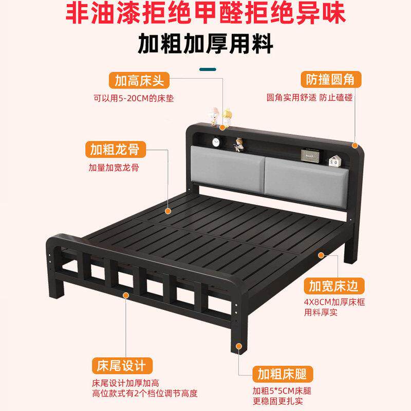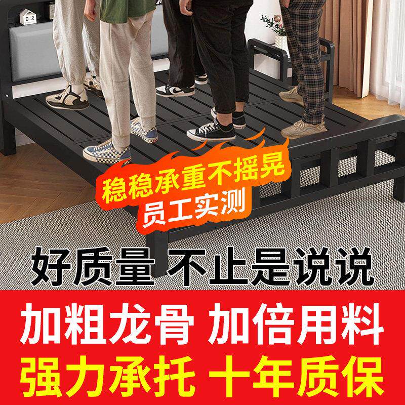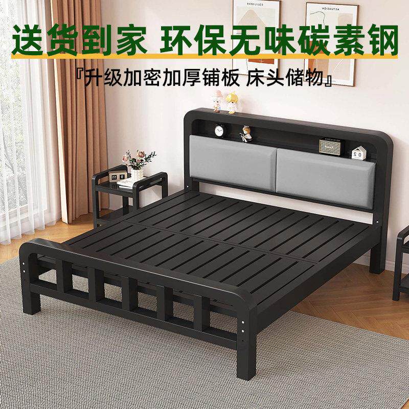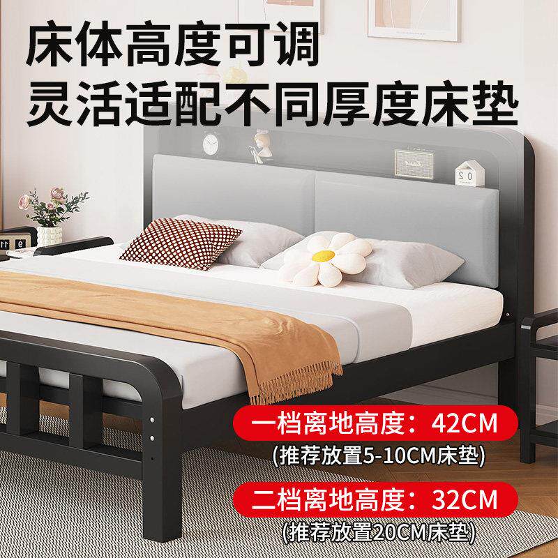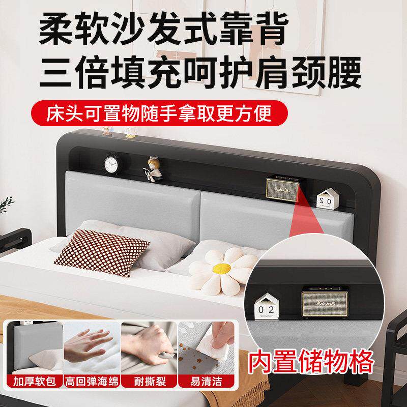 📚 铁艺床不锈钢床家用床头软包靠背1米5铁架床1米8双人床悬浮榻榻米