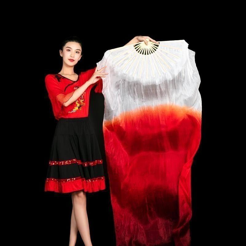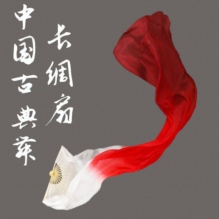 📚 九州同舞蹈扇子长稠扇缠舞蹈扇酒红渐变长飘万疆跳舞扇流年长绸扇