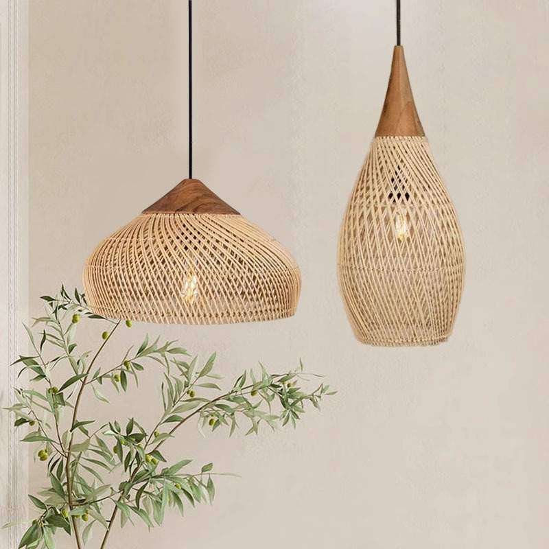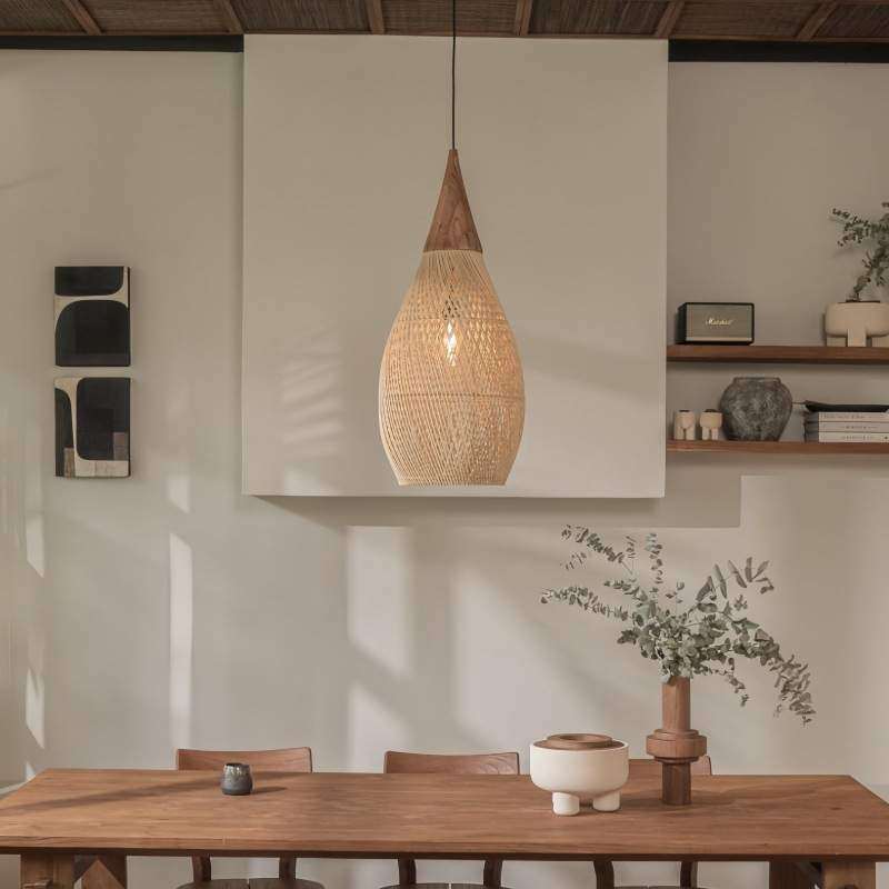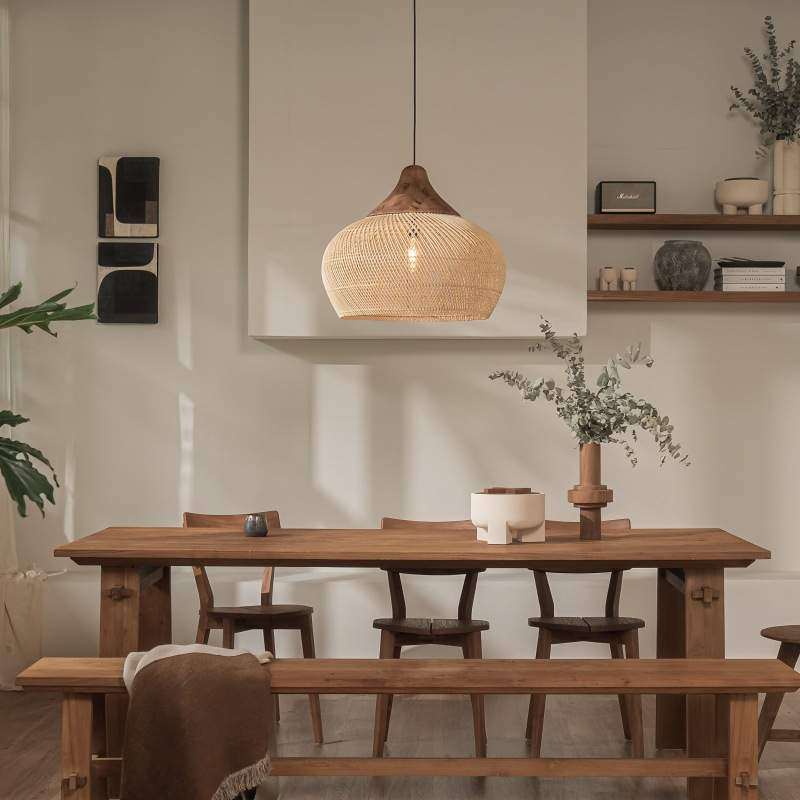 📚 中古侘寂风餐厅吊灯日式复古民宿茶室禅意客厅阳台卧室藤编餐桌灯