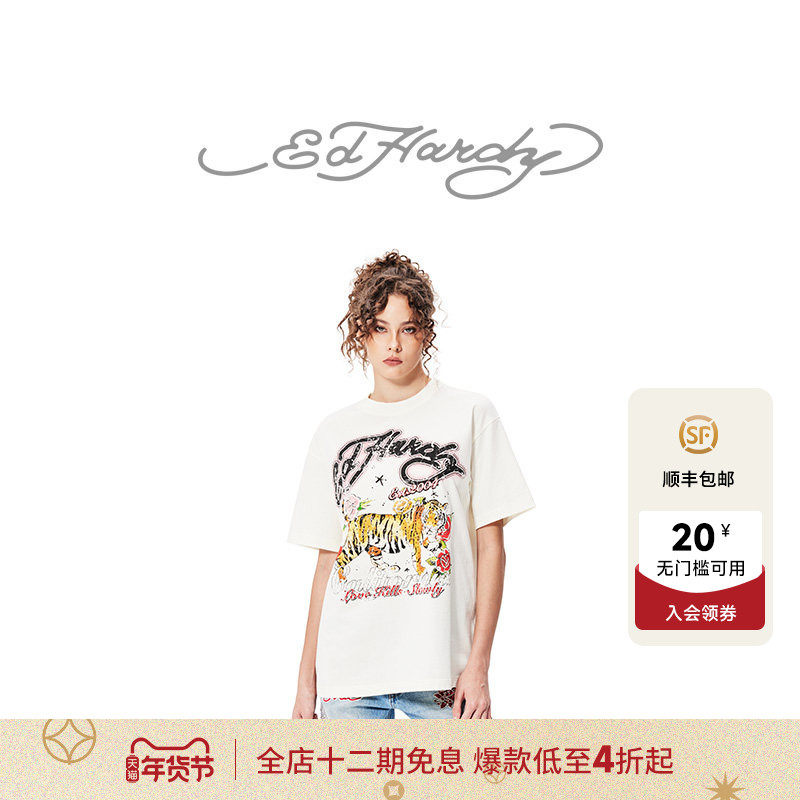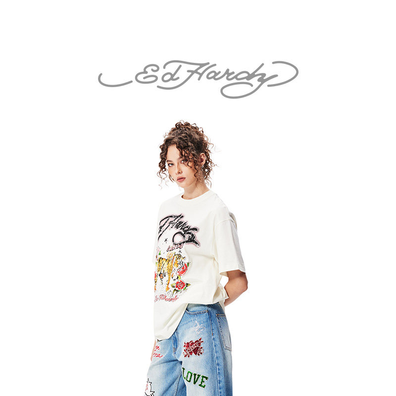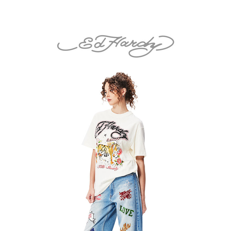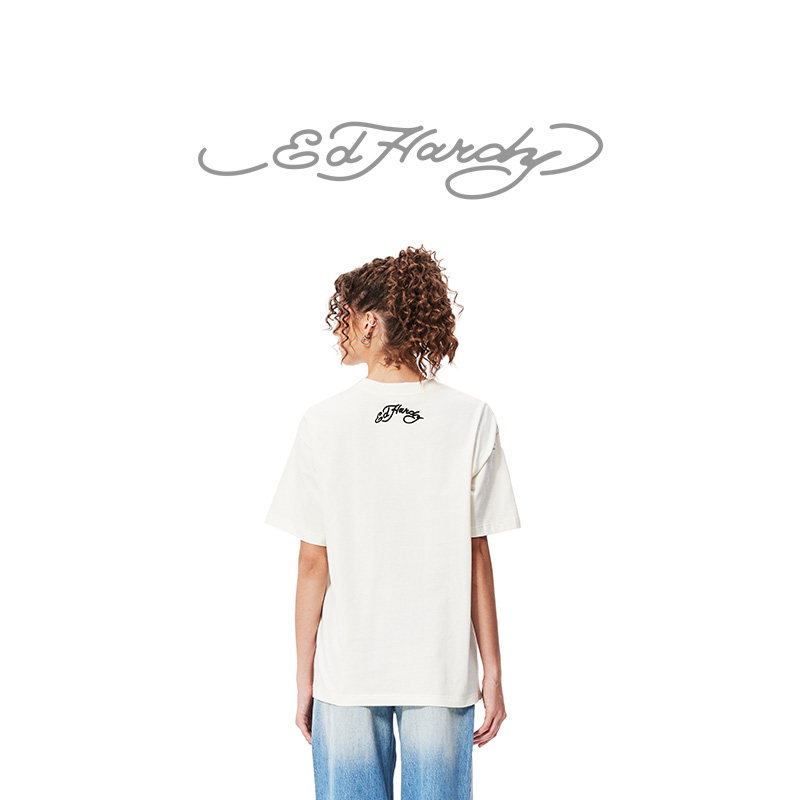 📚 Ed Hardy埃德哈迪冬季新款水浆印烫钻宽松休闲女士短袖T恤