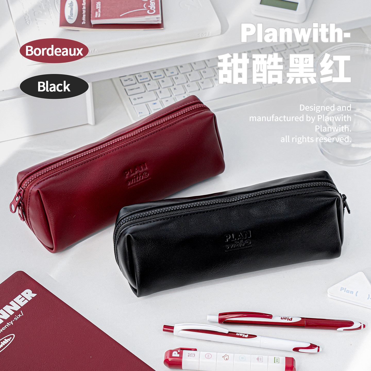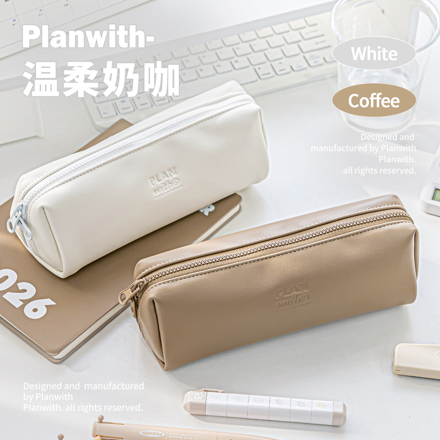 📚 Planwith皮质笔袋高颜值ins风大开口软皮多功能大容量拉链开合铅笔盒初高中学生用2026年新款简约文具袋收纳