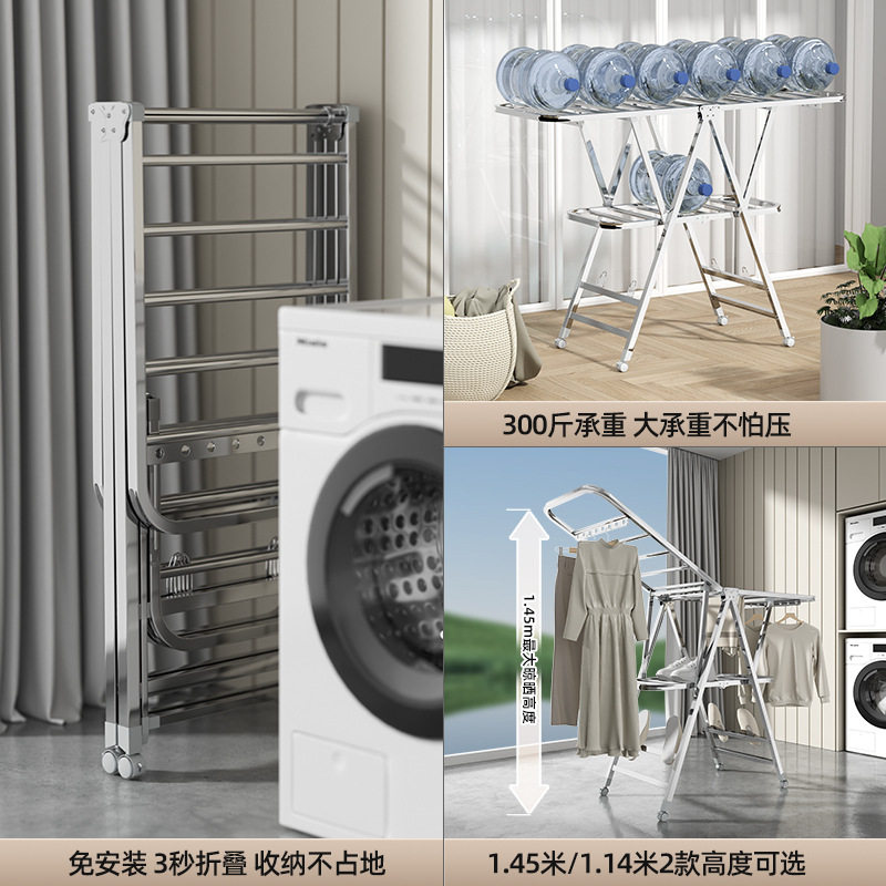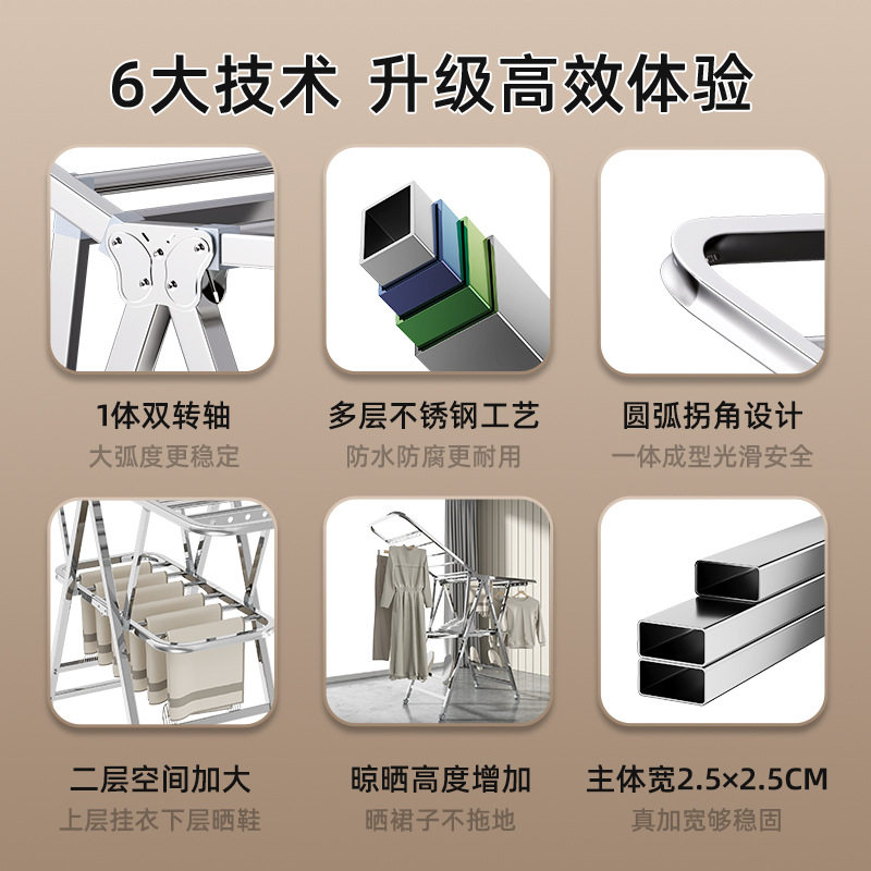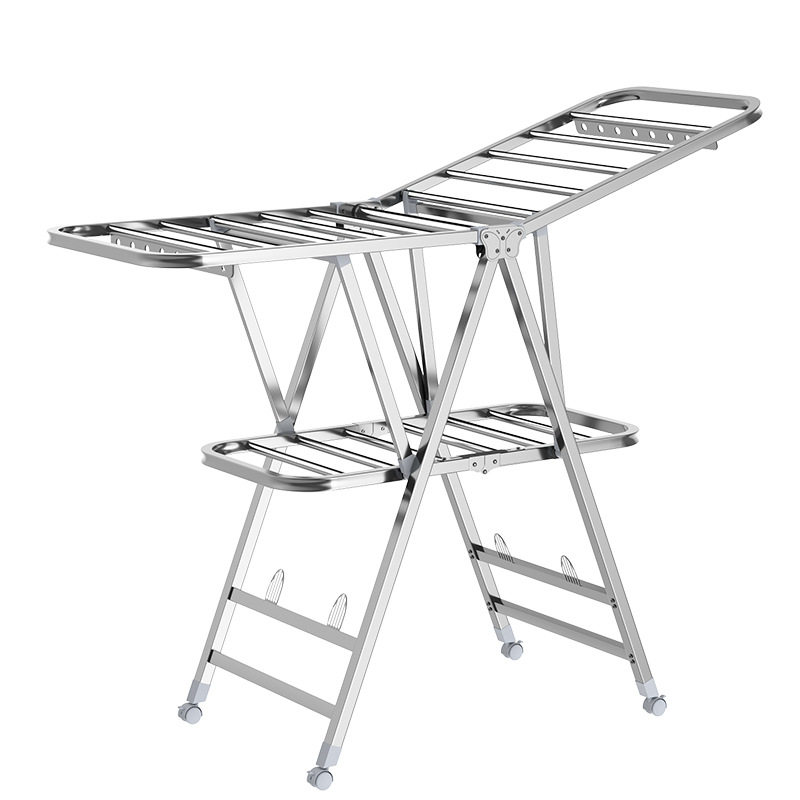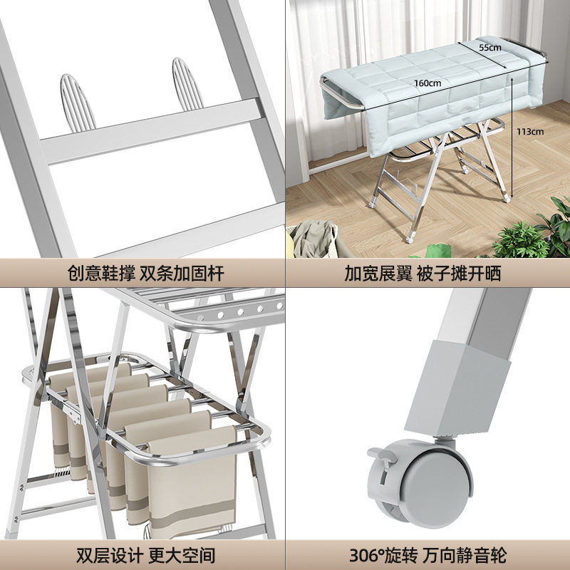 📚 莱洁翼型晾衣架落地折叠晒衣加厚不锈钢挂衣架阳台晾晒架