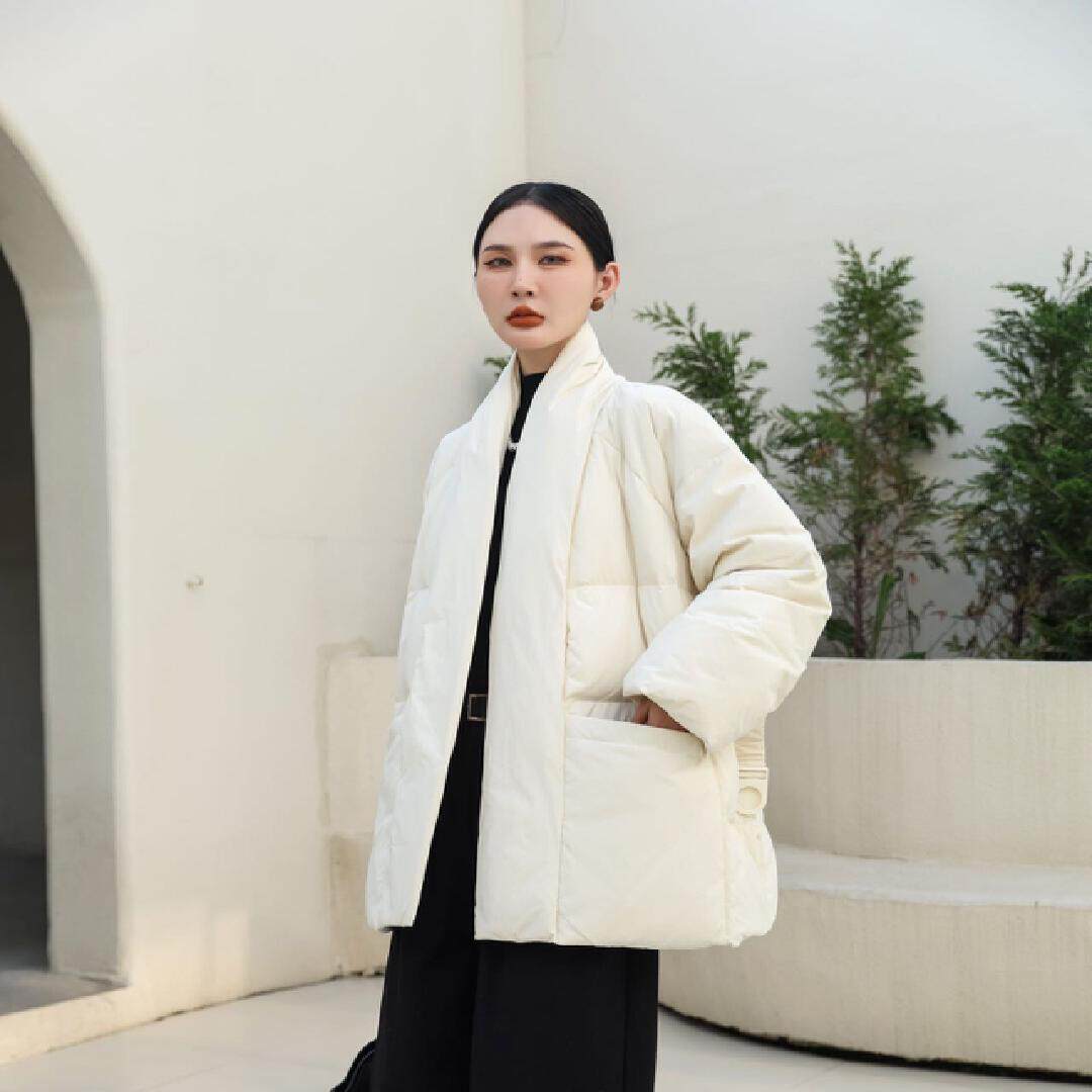 📚 设计感收腰羽绒服女2025冬新款小众慵懒风白鸭绒超暖和时髦外套女