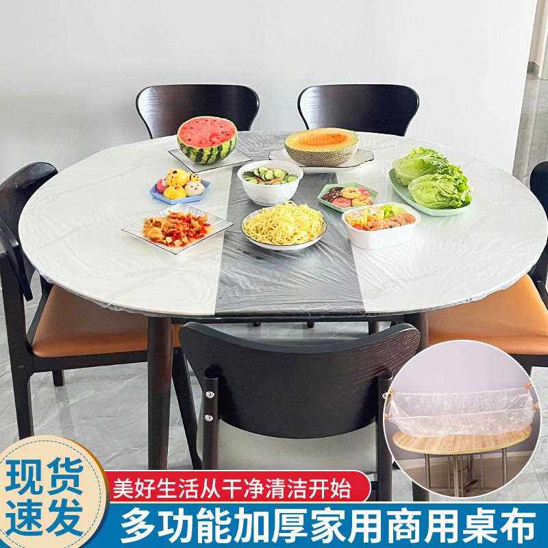 📚 新款直销一次性束口松紧伸缩桌布家用餐桌桌布加厚PE塑料一次性餐