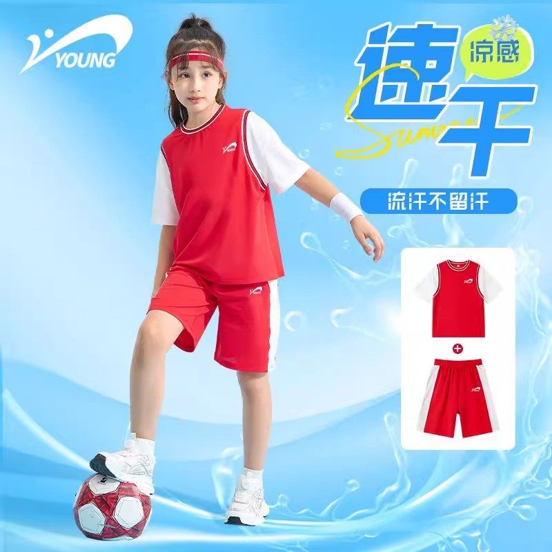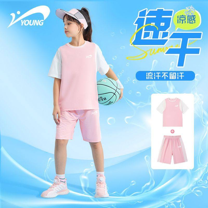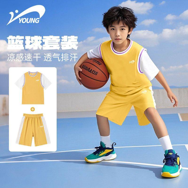 📚 贵人鸟儿童篮球服男童夏季新款女大童打球运动套装蓝色速干训练服