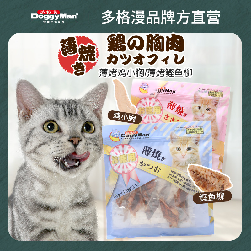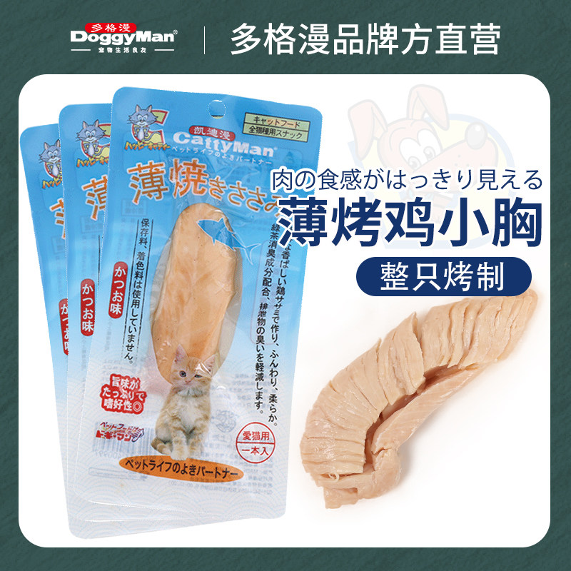 📚 多格漫猫咪薄烤鸡小胸肉猫零食鸡胸肉干幼猫营养增肥老猫零食3包
