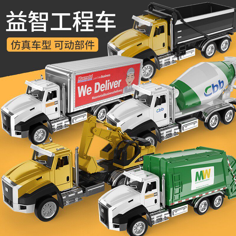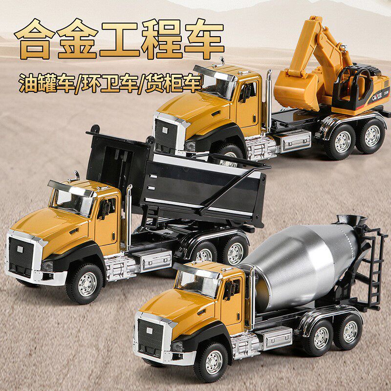 📚 合金工程车玩具回力车模型挖掘机搅拌消防车套装儿童汽车礼物男孩