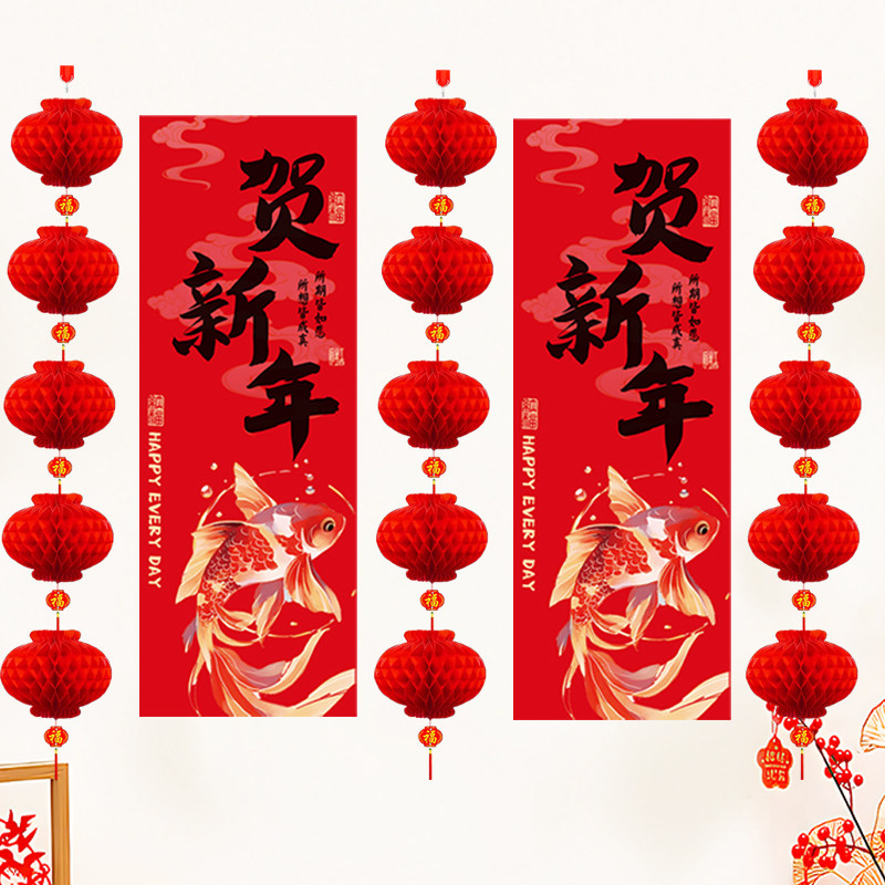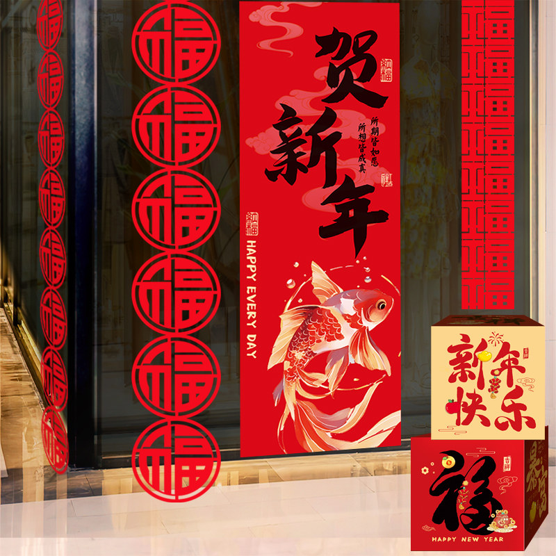📚 元旦装饰2026马年长条连福大门背景墙商场店铺超市喜庆氛围布置品