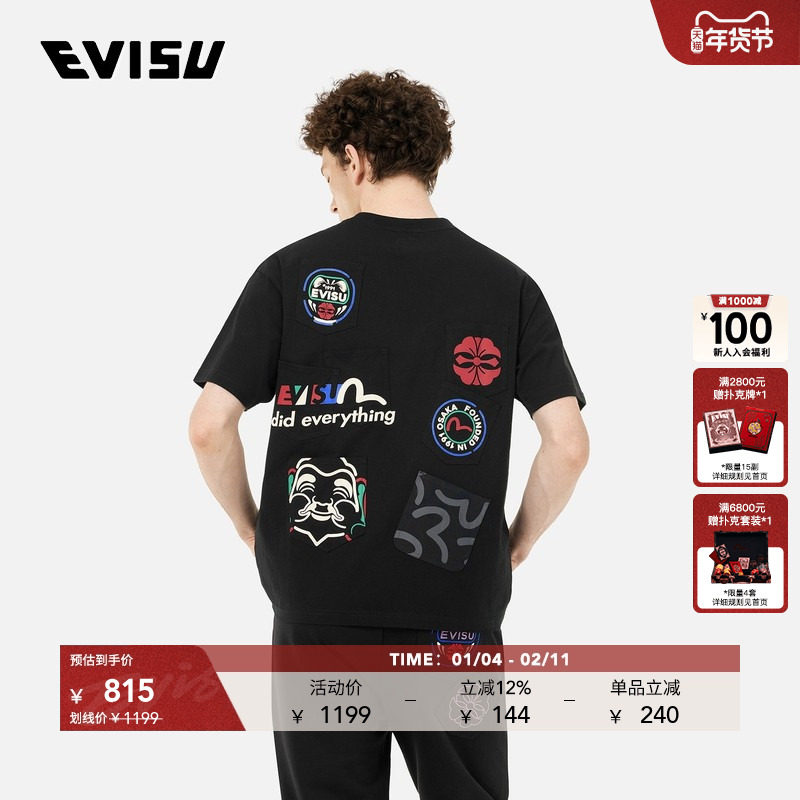 📚 EVISU福神 男士多重印花短袖T恤2ESHTM5TS1221RXCT