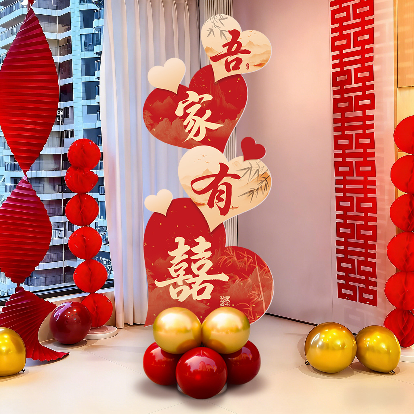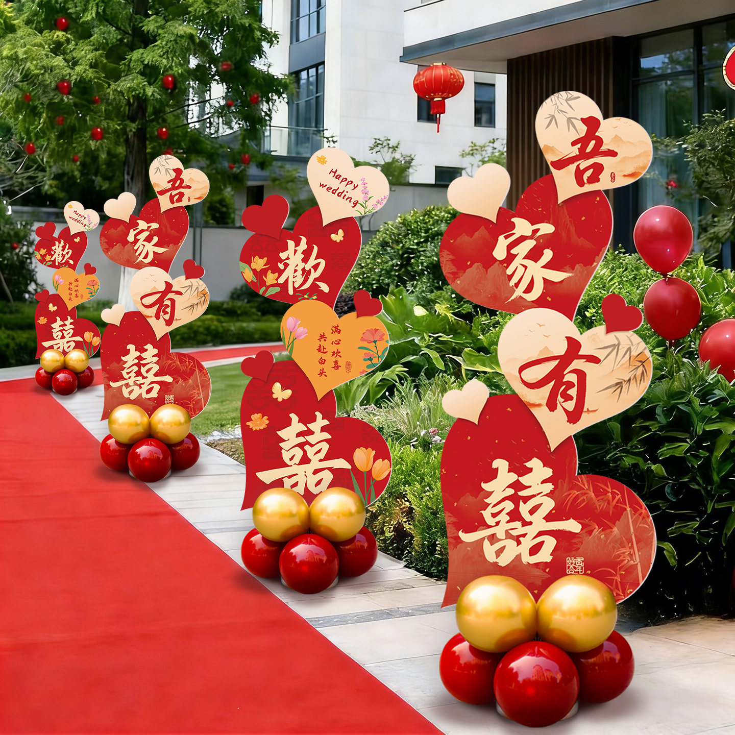 📚 婚房布置装饰立体爱心kt板迎宾牌结婚礼立柱客厅喜庆场景摆件套装