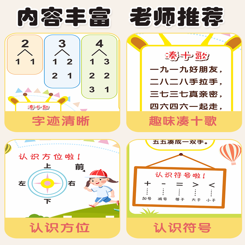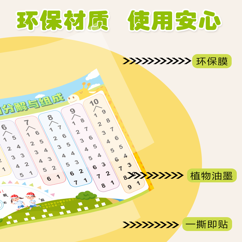 📚 十10以内的分解与组成挂图幼儿园数学数字分成教具拼音字每表墙贴