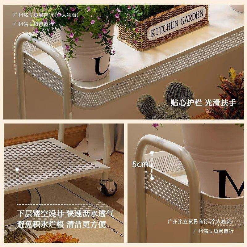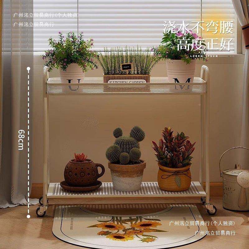 📚 子阳客台铁WHR艺花架厅落架地双层室内带轮花盆奶油风多肉花架置