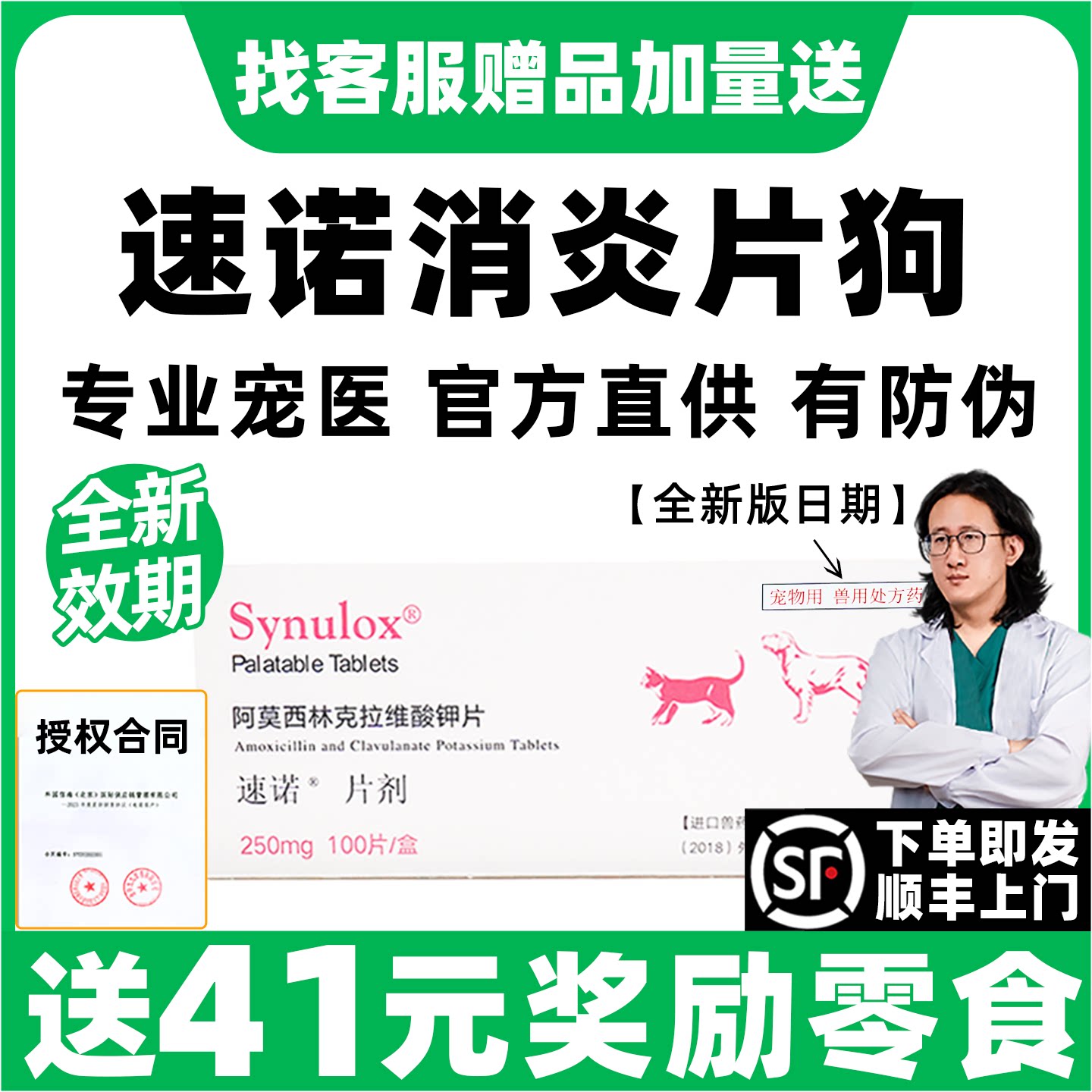 📚 速诺片狗狗消炎药速诺消炎片狗阿莫西林克拉维酸钾片猫宠物250mg