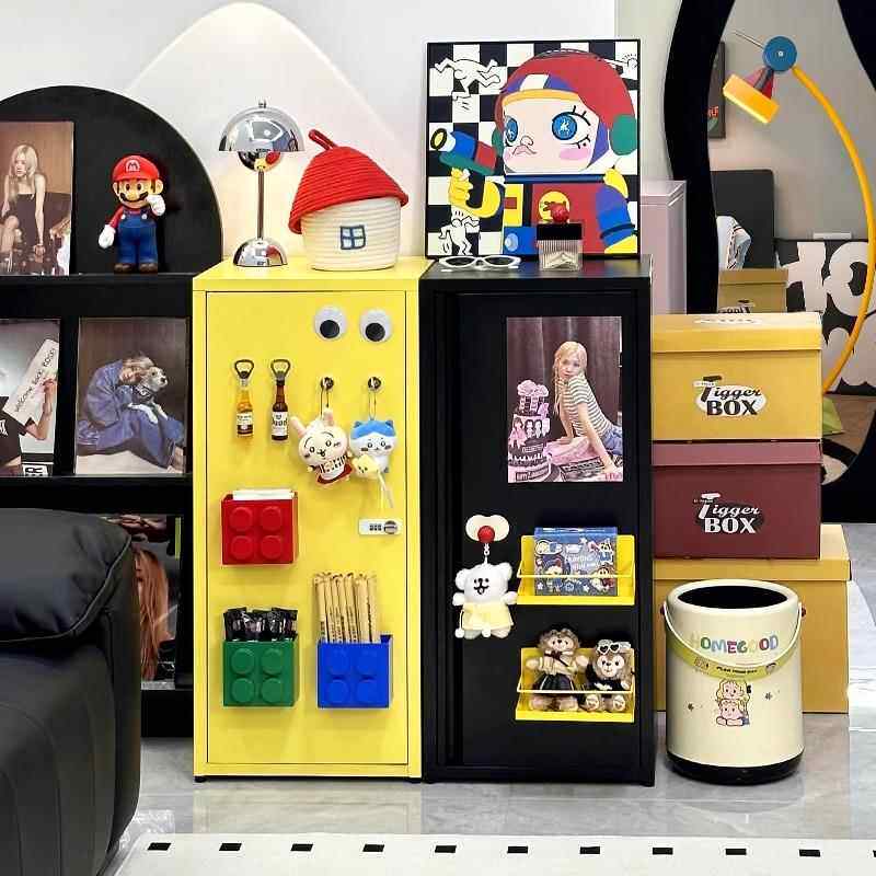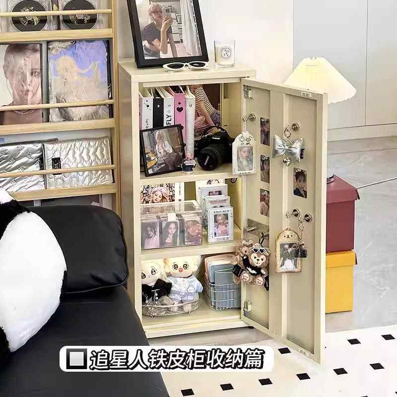 📚 奶油风铁艺收纳柜家用客厅现代马卡龙铁皮柜夹缝简约单门窄柜子