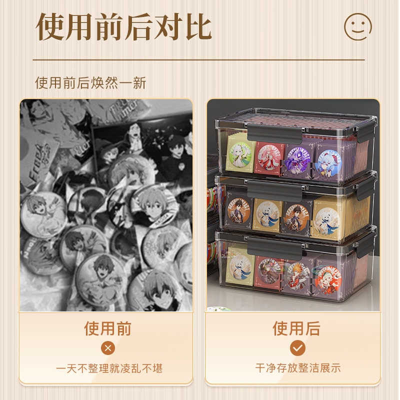 📚 吧唧收纳盒亚克力透明带盖密封防潮徽章动漫周边谷子防尘展示盒子