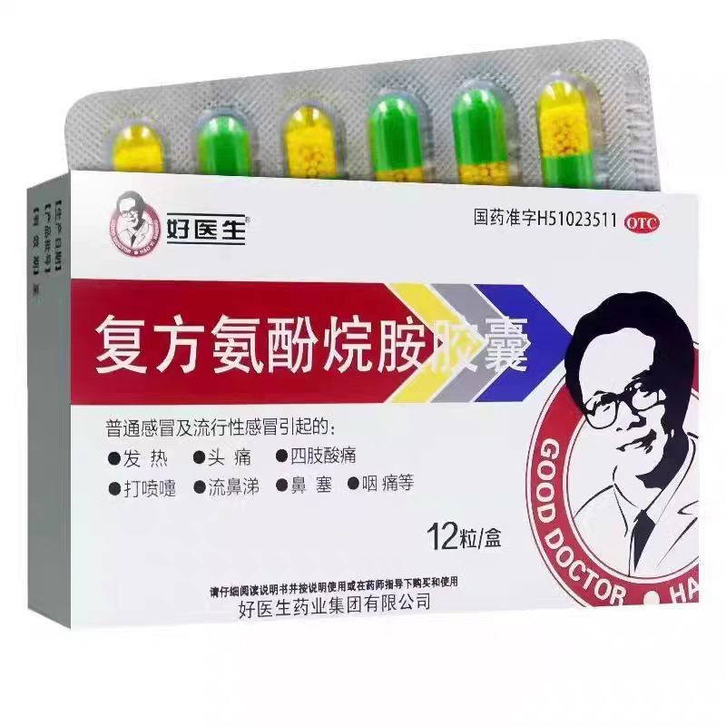 📚 好医生复方氨酚烷胺胶囊12粒发热头痛四肢酸痛鼻塞咽痛预防感冒