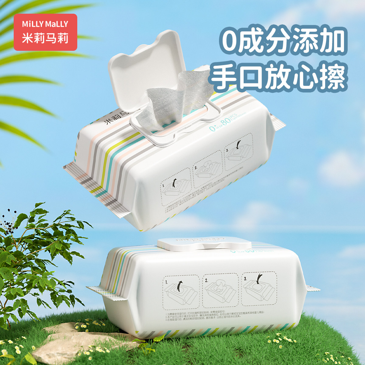 📚 米莉马莉新生婴儿手口屁专用湿巾宝宝儿童加厚便携大包实惠装家用