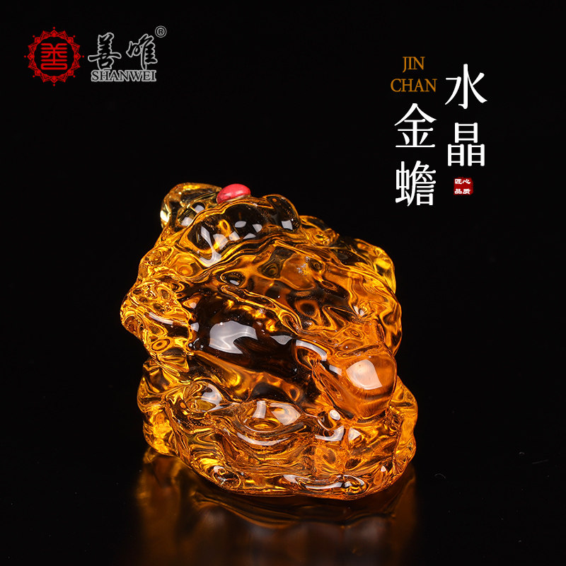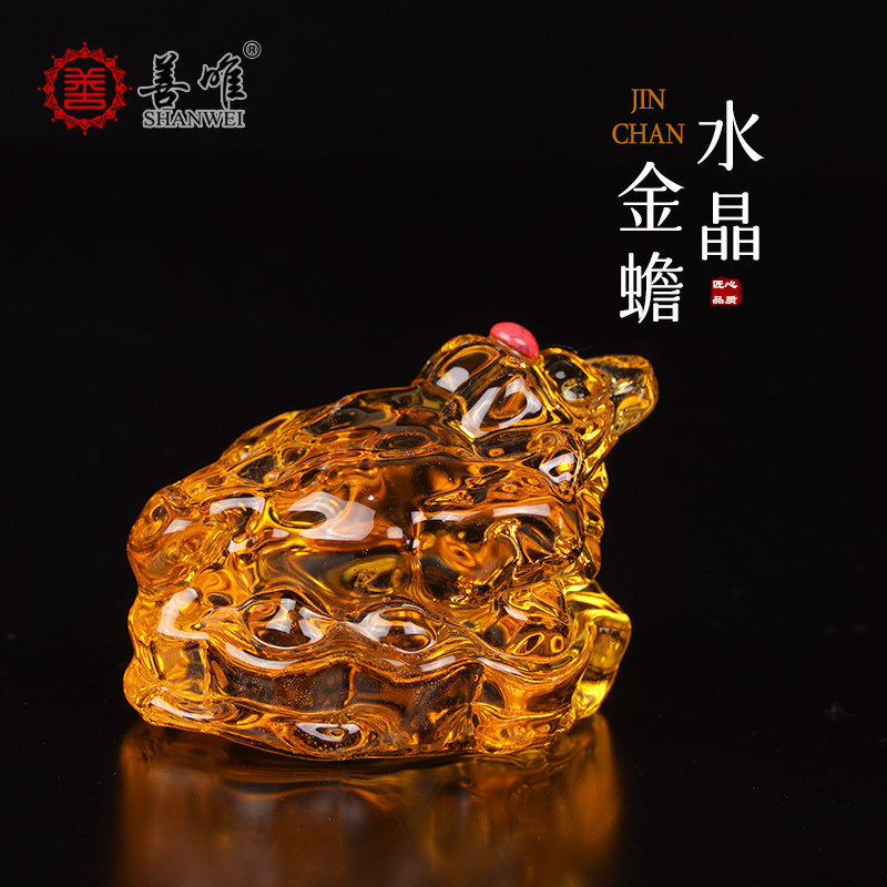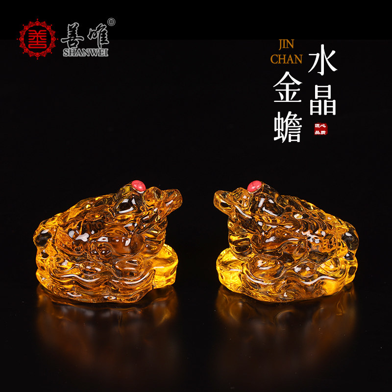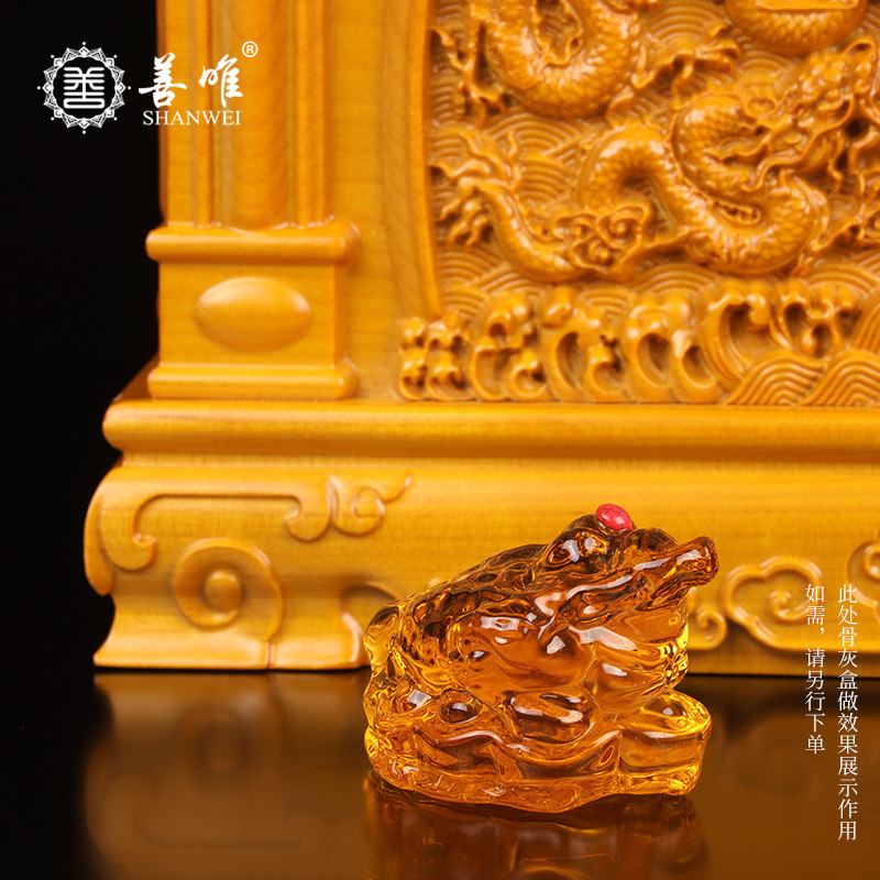 📚 善唯 黄色水晶金蟾骨灰盒旁墓地金蝉摆件安葬随葬下葬殡葬用品