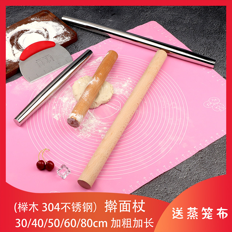 📚 实木擀面杖滚轴擀面棍饺子皮擀面棒大小号苏棍烘焙不锈钢压面棍