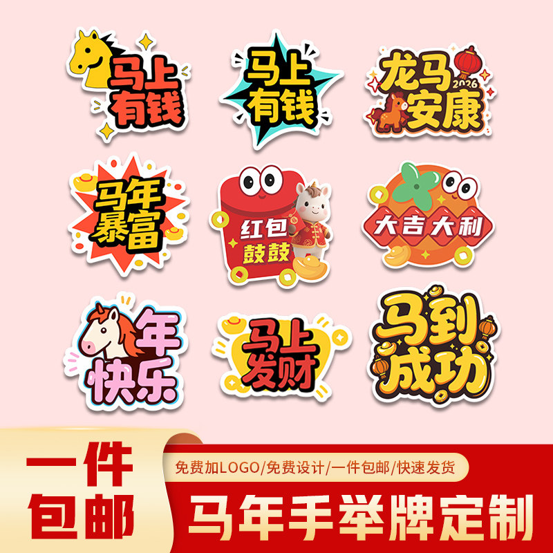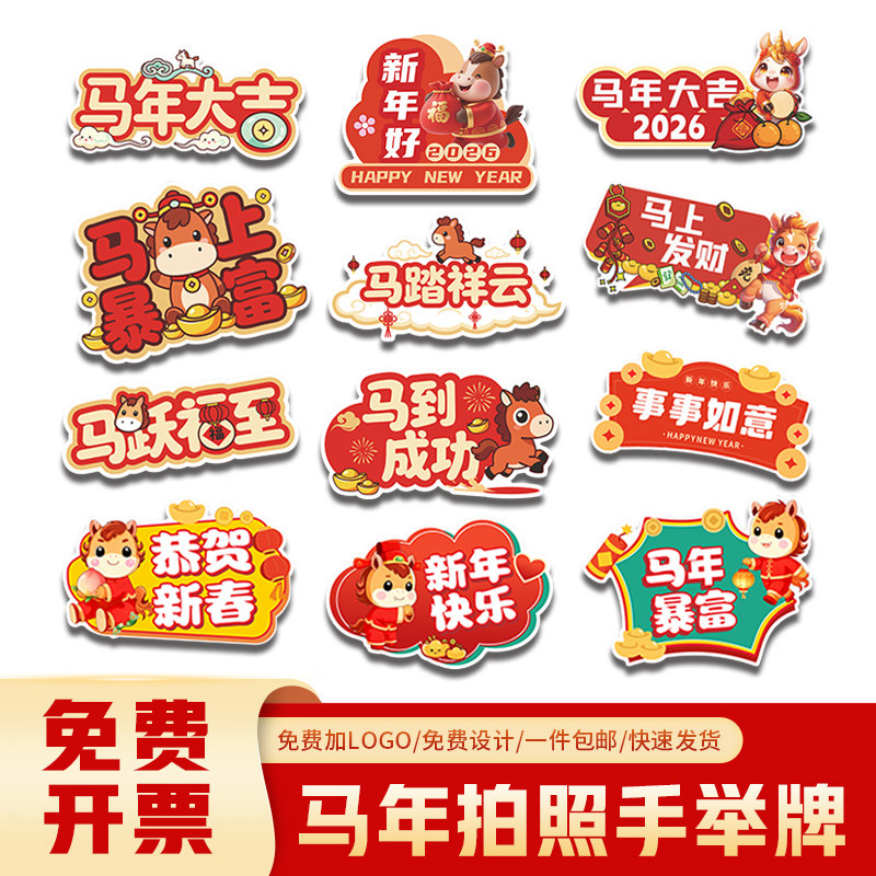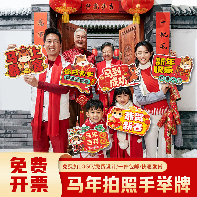 📚 2026马年开门红公司团建手举牌装饰布置氛围新年kt板合影拍照道具