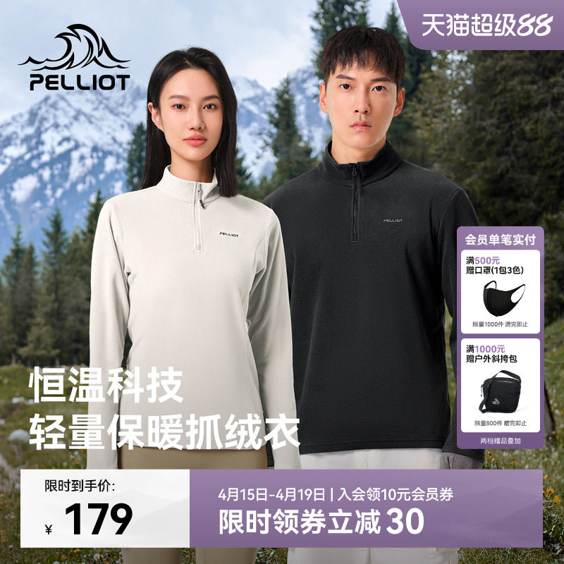📚 伯希和户外抓绒衣男款冲锋衣内胆摇粒绒立领保暖内搭长袖打底衫女