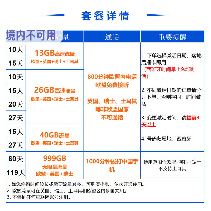 📚 欧洲多国电话卡vodafone西班牙5G手机流量欧盟漫游旅游留学上网卡
