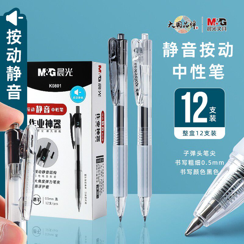 📚 晨光作业神器速干按动中性笔0.5子弹头AGPK0801静音行家学生水笔