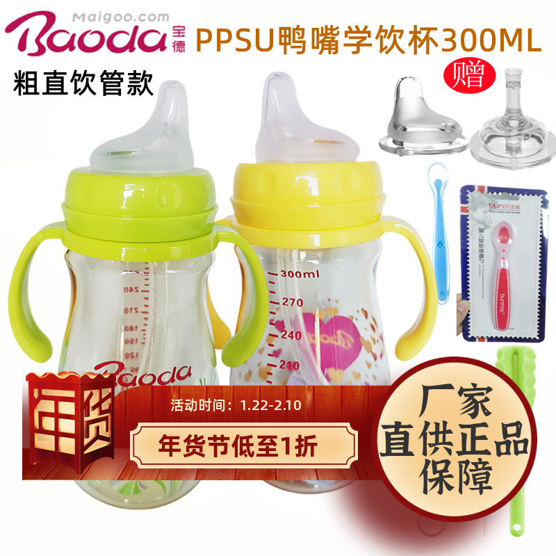 📚 宝德PPSU奶瓶鸭嘴学饮杯粗直饮管款德国进口材质大宝防胀气300ML
