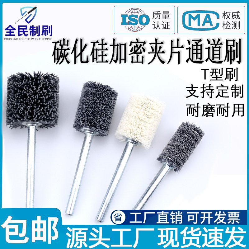📚 碳化硅管道刷通道内孔毛刷去毛刺 工业加密清理抛光 T型刷磨料丝