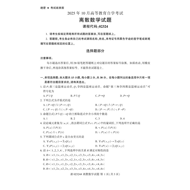 📚 自考02324离散数学历年真题及答案视频网课赠复习资料电子版