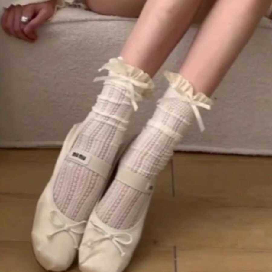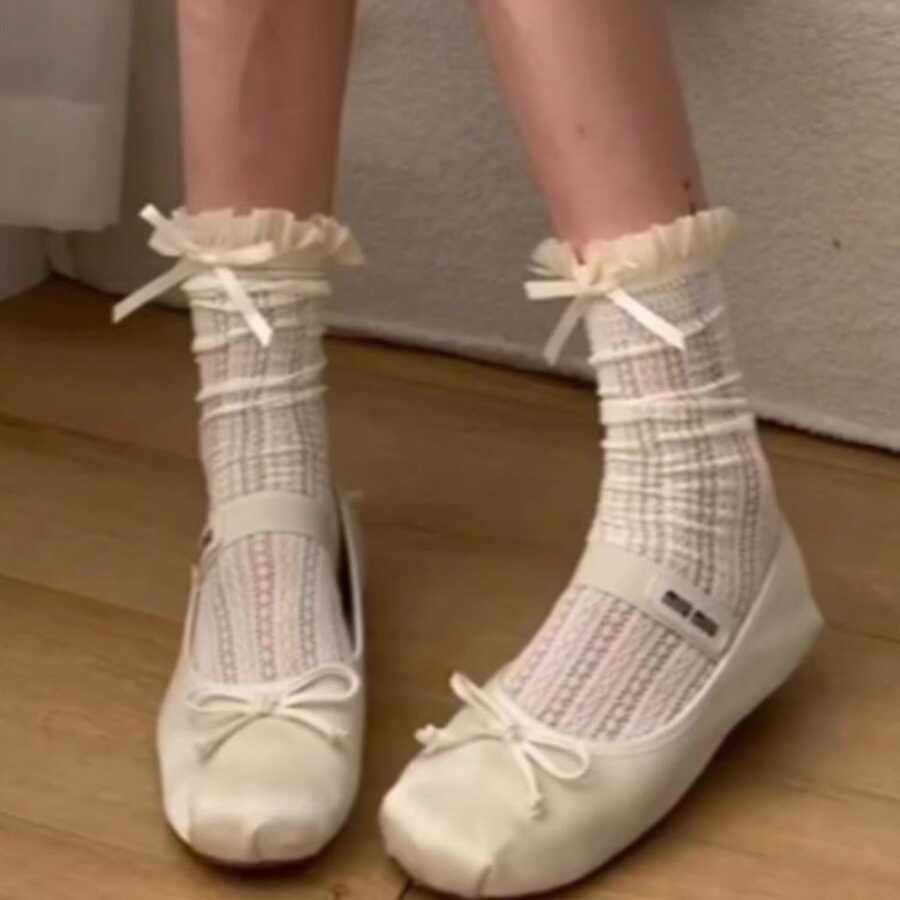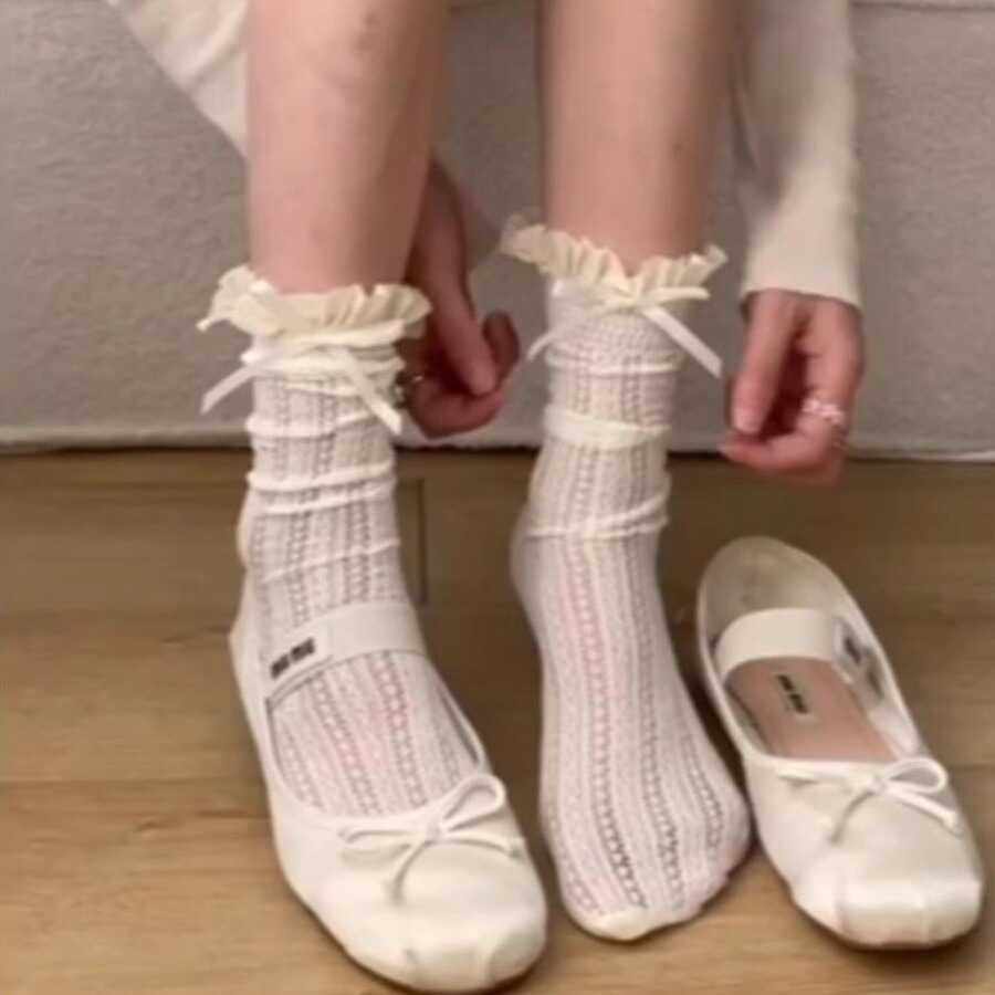 📚 纯欲和慵懒拿捏刚好~jk洛丽塔袜子蕾丝花边蝴蝶结镂空中筒堆堆袜