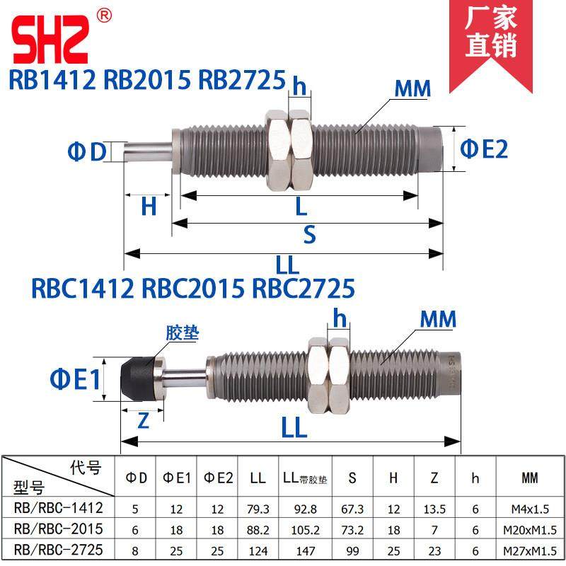 📚 气动气缸RBC液压油压缓冲器AC0806减震阻尼器RB0604/AD1412-HR30