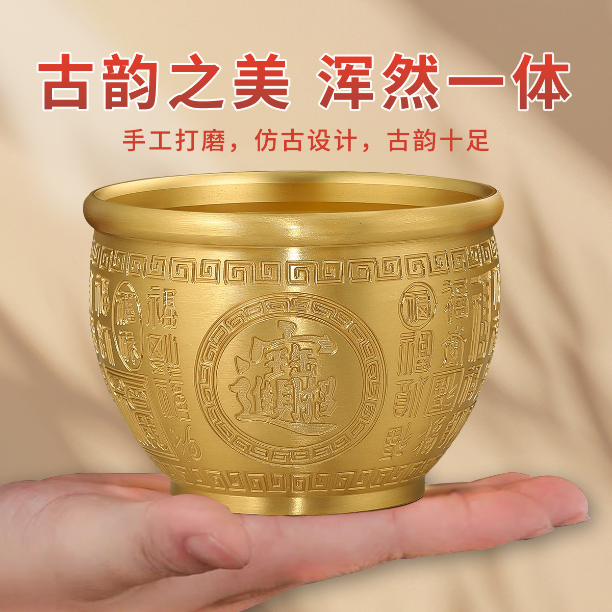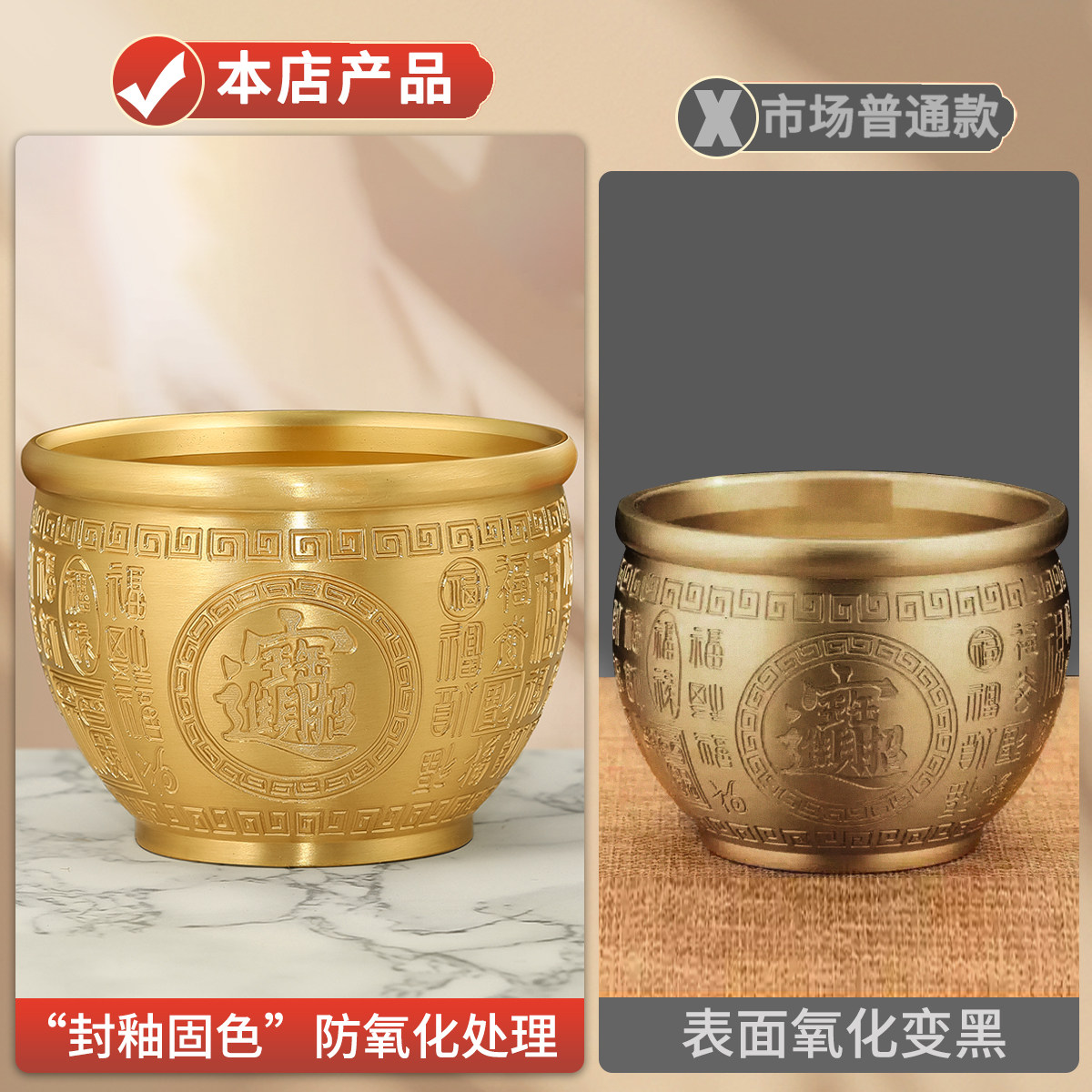 📚 百福铜缸纯黄铜米缸冰箱上的聚宝盆招财聚财摆件铜制碗新款存钱罐