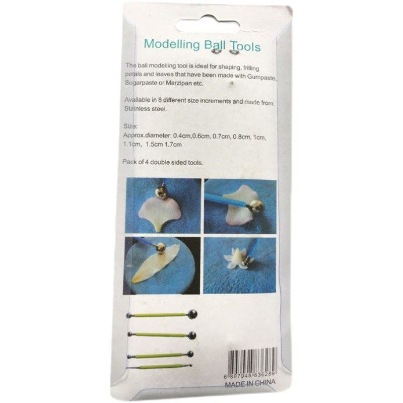 📚 翻糖蛋糕工具 4支8头实心不锈钢造型工具 丸棒雕刻组 DIY烘焙工具