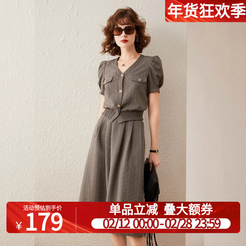 📚 白鹿语法式时尚复古套装2025夏季款泡泡袖短外套通勤半身裙2件套