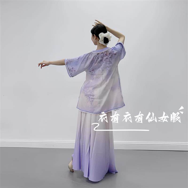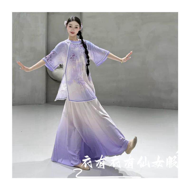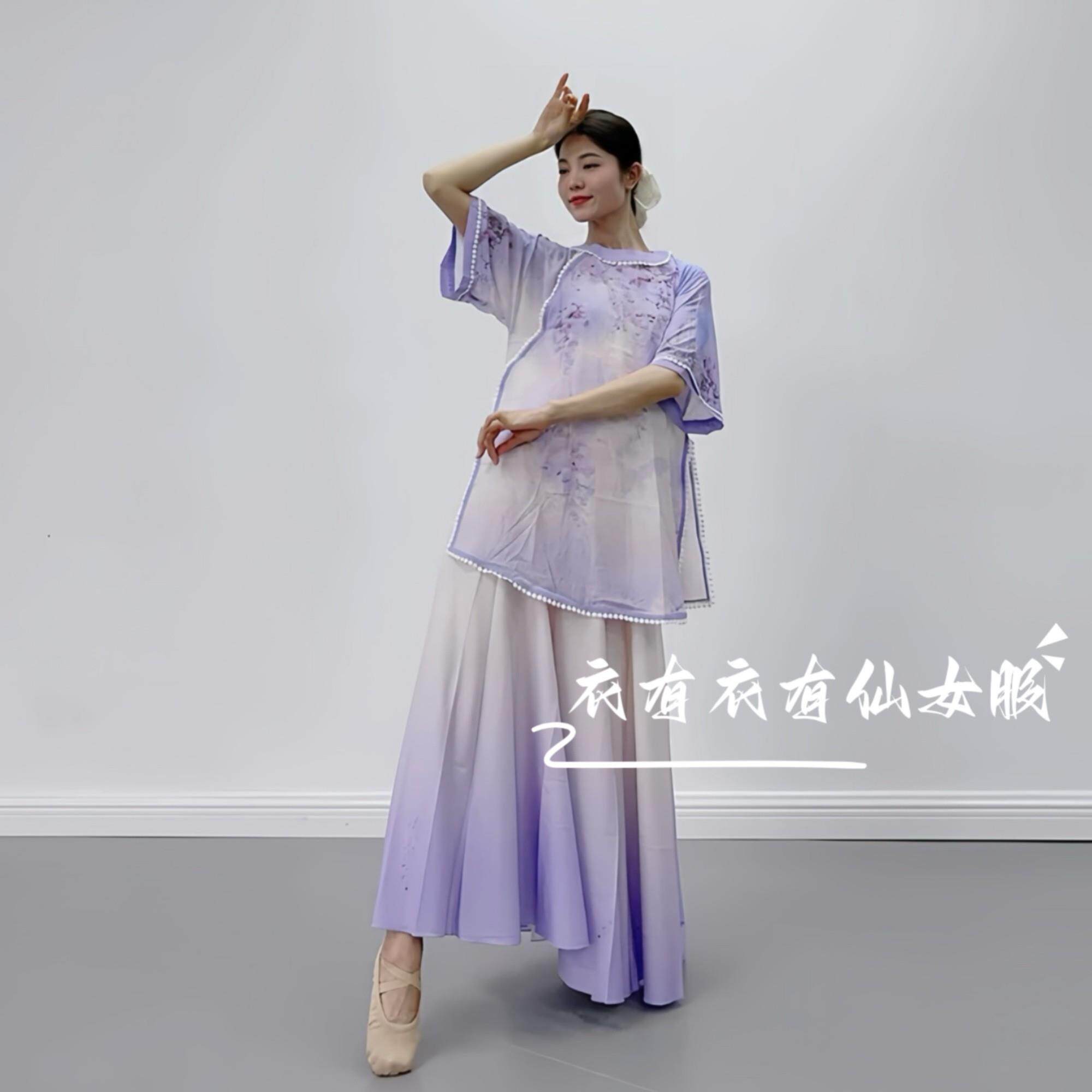 📚 紫藤漫漫~唐风圆领新中式宽松练功服飘逸大摆裙舞蹈服演出套装