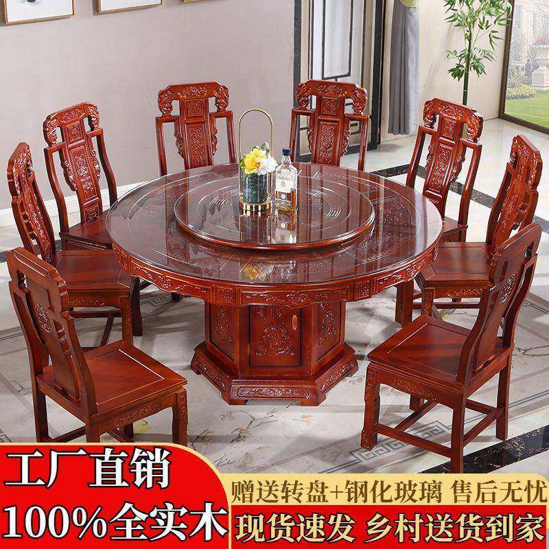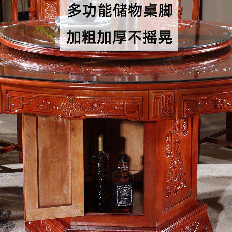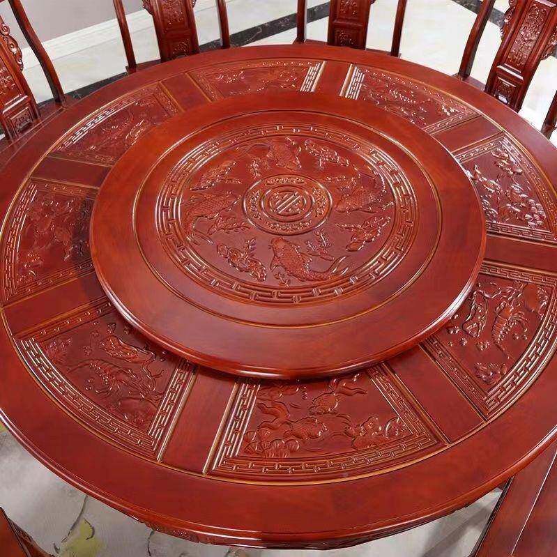 📚 实643木餐带桌家用中饭式仿雕花圆形大圆餐桌古转盘家用10人吃桌