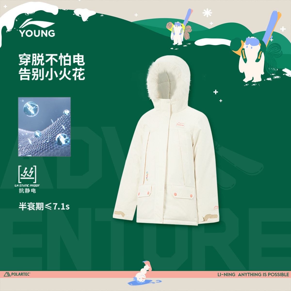 📚 商场同款|李宁童装中长款羽绒服女大童女孩外套新款保暖鸭绒童装