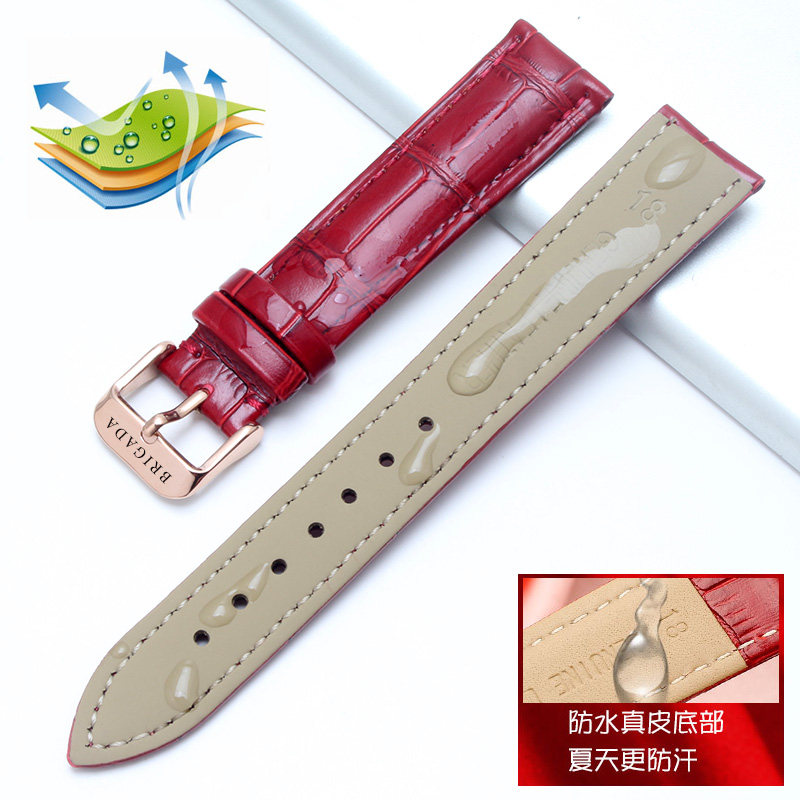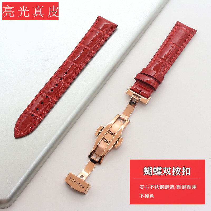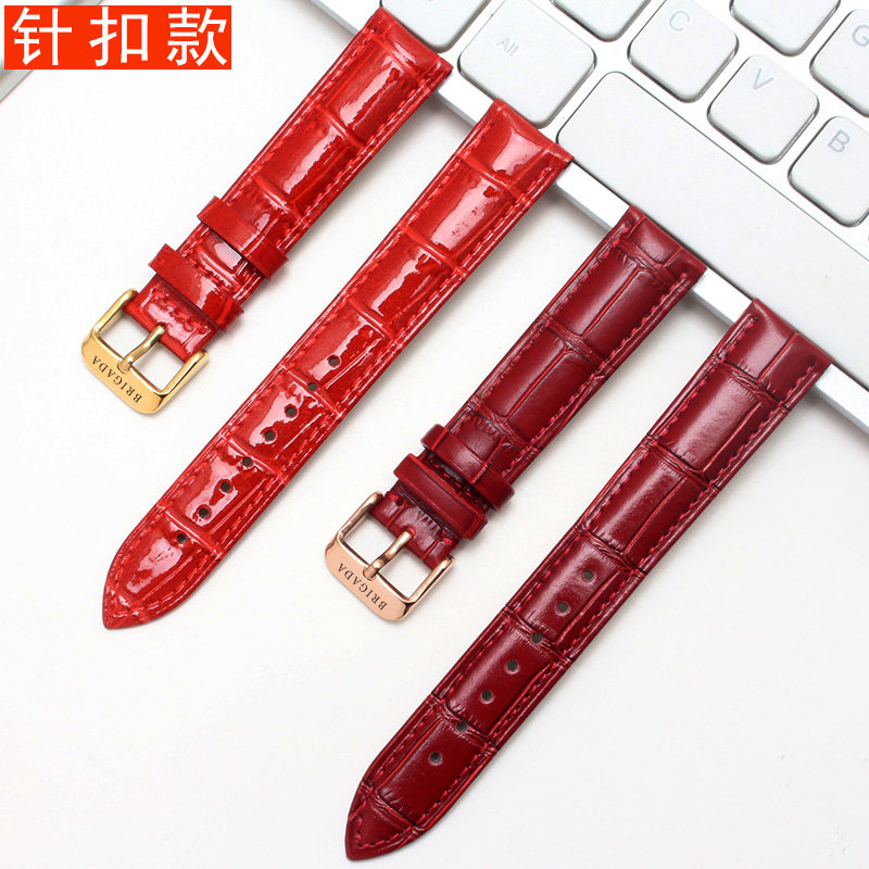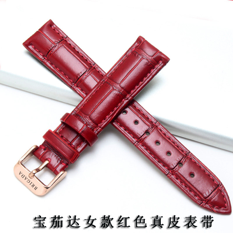 📚 宝茄达女款红色手表带 BRIGADA女机械表通用蝴蝶扣平口皮表链16mm