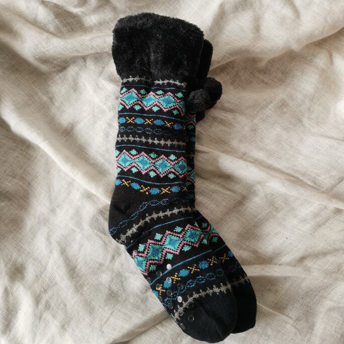 📚 外贸出口美国订单双层毛线羊毛绒地板鞋靴子保暖特厚卡通中筒袜子