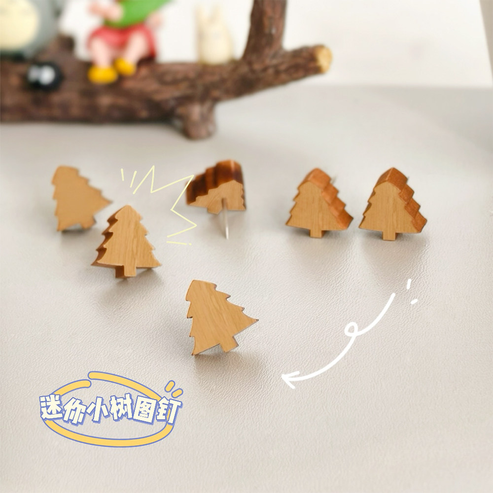 📚 创意圣诞树木质图钉手工DIY按钉软木板留言钉照片墙钉子工字钉