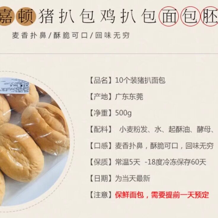 📚 嘉顿猪扒包汉堡面包胚美味鸡扒包胚烘焙脆皮方汉堡家用10个装商用