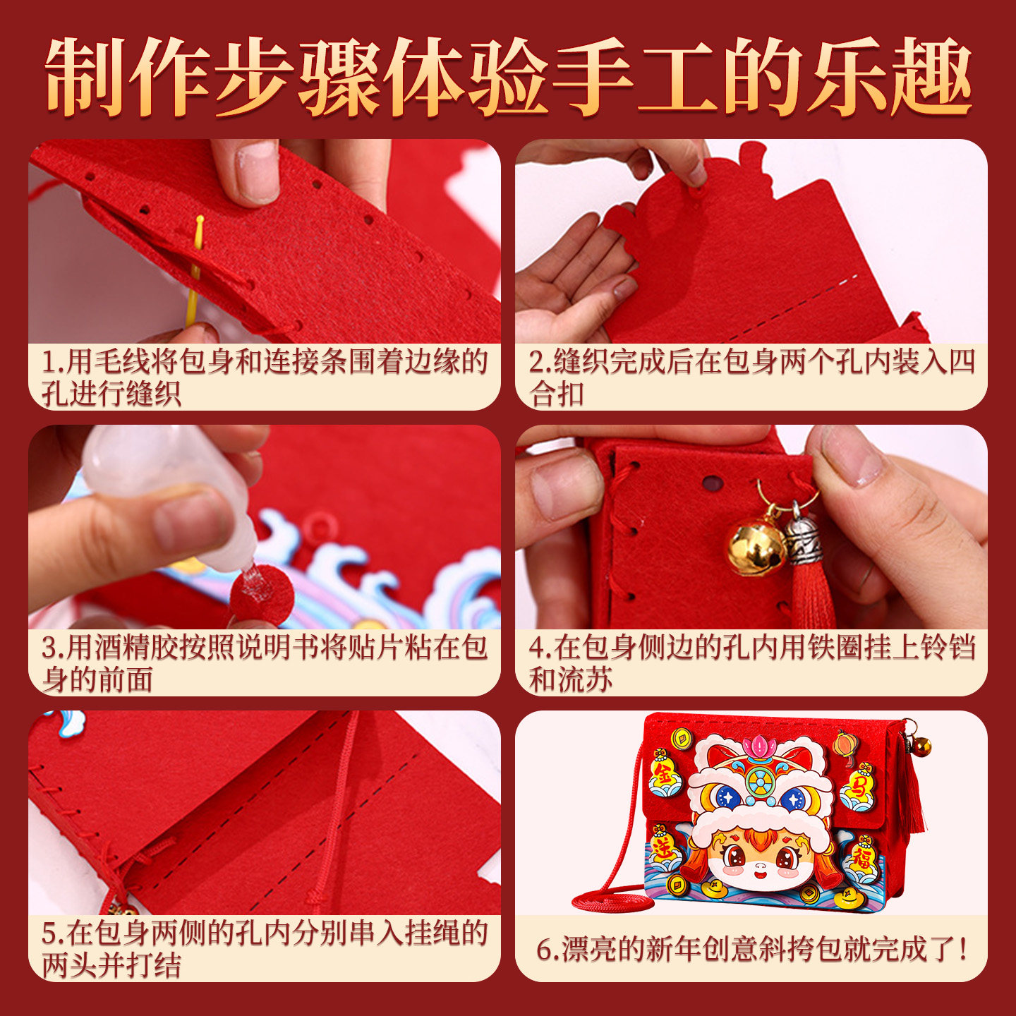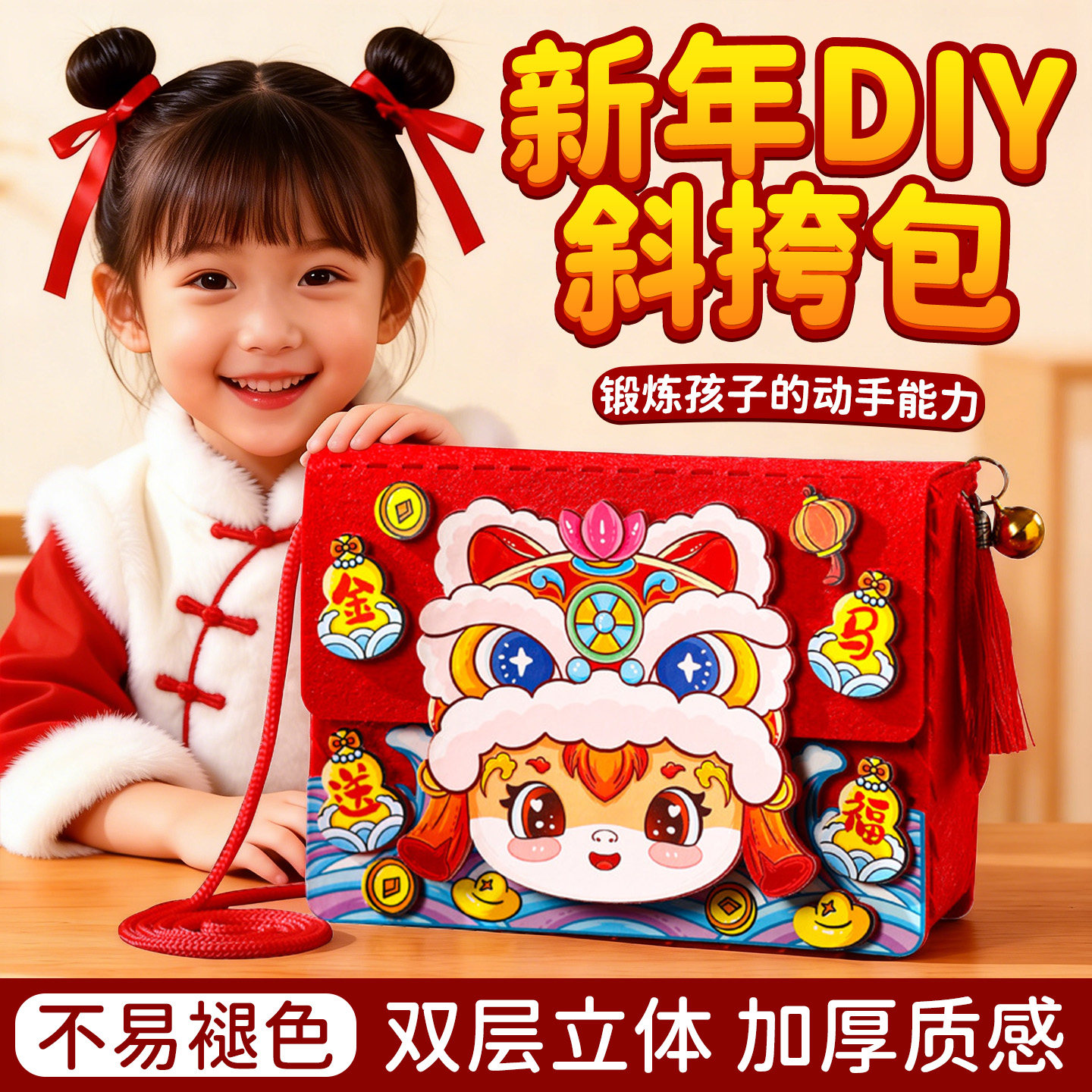 📚 新年春节儿童手工diy制作材料包缝缝乐马年挎包元旦礼物福袋玩具
