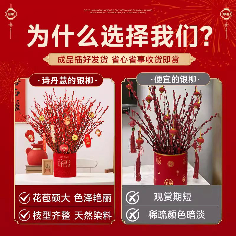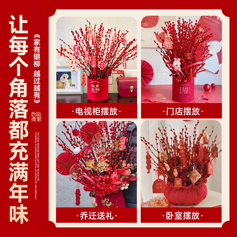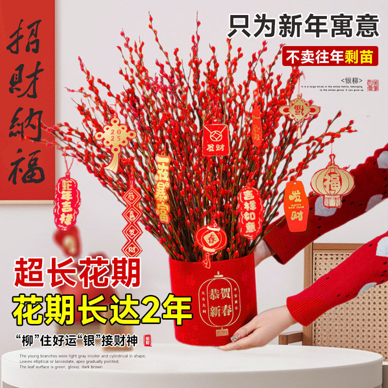📚 银柳真花鲜枝干花花束客厅摆件年宵花超长花期红柳枝条花卉绿植物