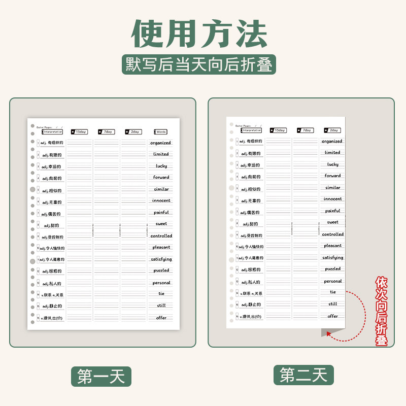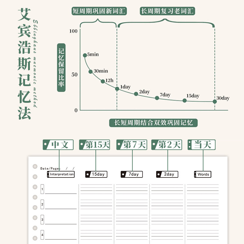 📚 单词训练营英语单词本艾宾浩斯遗忘曲线记忆本小学生初中生记背神器听写默写本活页三年级每日10词速记专用