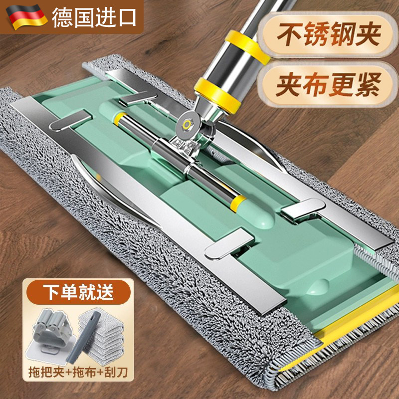 📚 德国扦把拖把家用平板一拖净2024新款免手洗夹布式瓷砖木地板专用