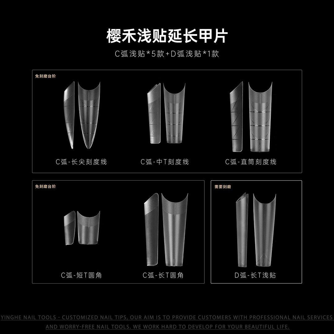 📚 YHH樱禾 D弧定制长T浅贴 C弧浅贴 专业美甲工具 中线定位延长甲片