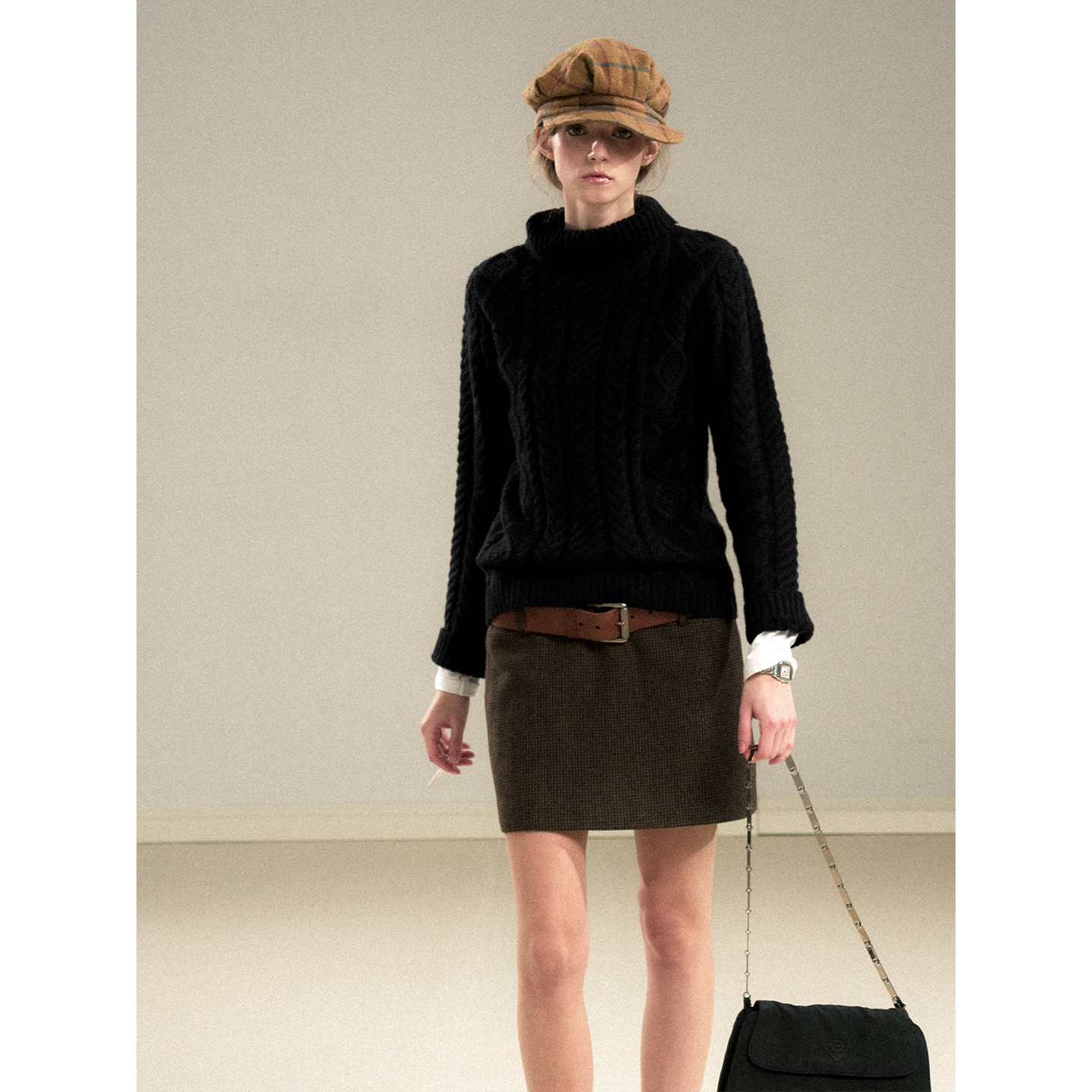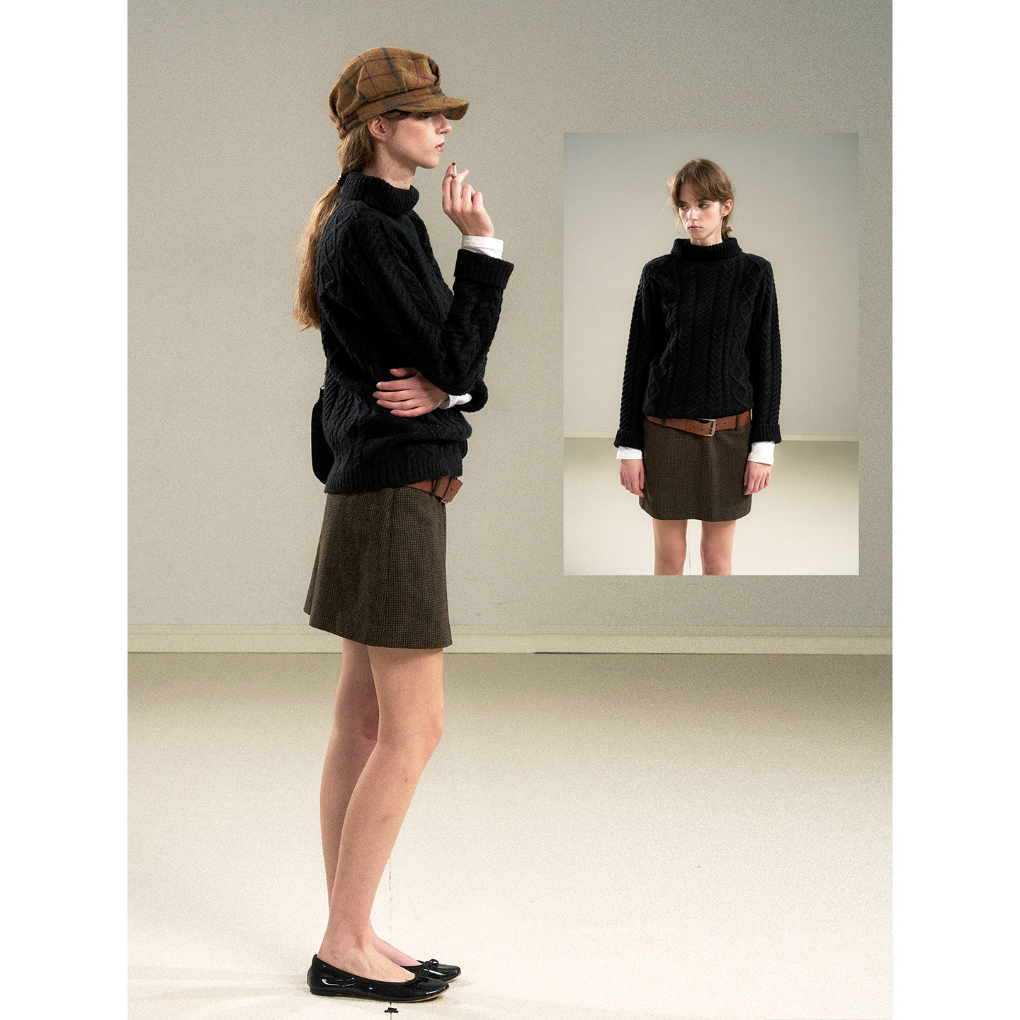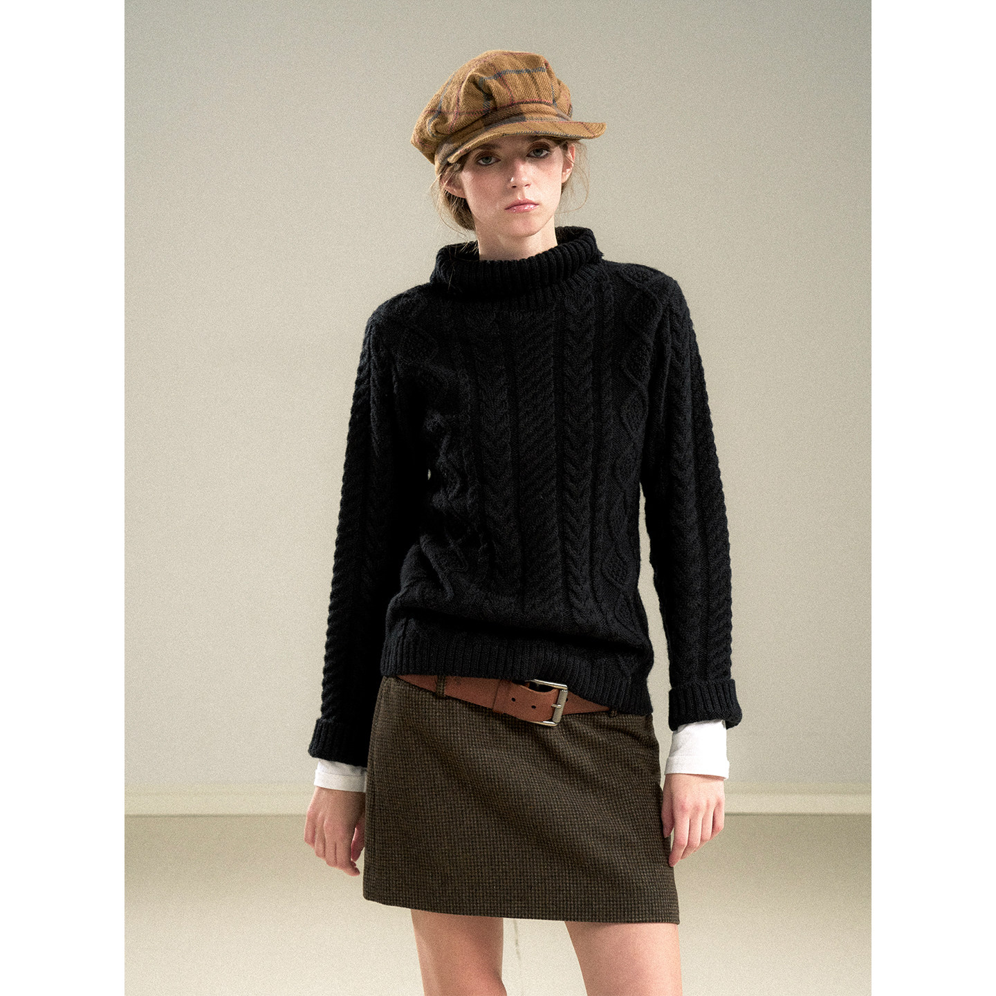 📚 Cycle Document 100%纯羊毛/秋冬复古黑色高领保暖针织麻花毛衣女