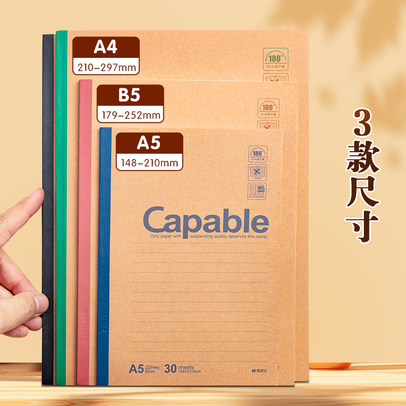 📚 晨光笔记本子牛皮纸无线装订本A5capable记事本b5简约加厚练习本小大中学生软面抄软抄本商务办公作业本