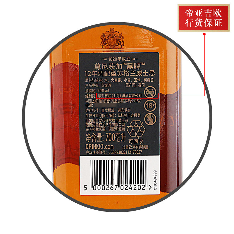 📚 Johnnie Walker尊尼获加黑牌黑方12年威士忌进口洋酒无盒700ml